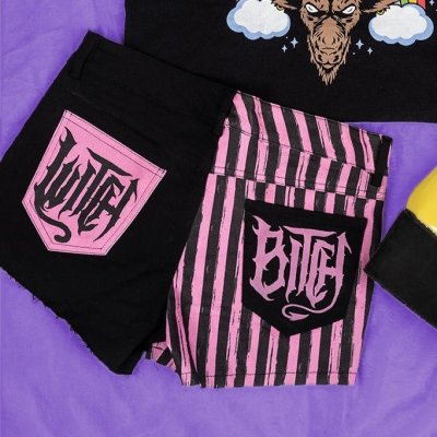 🔥SALE🔥Purple Striped Bat Studded / ショートパンツ【TOO FAST】 [WSHFI-PPBT]