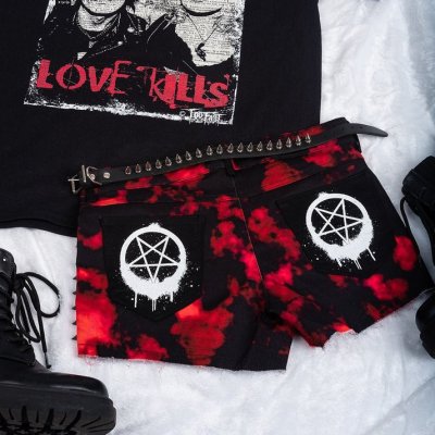 🔥SALE🔥Pink Striped Witch Bitch Studded / ショートパンツ【TOO FAST】 [WSHFI-PKWBT]