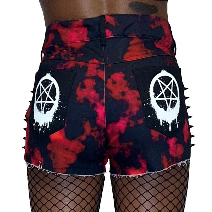 🔥SALE🔥Pentagram Red Tie Dye Studded / ショートパンツ【TOO FAST】 [WSHFI-TDPNT]
