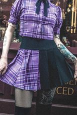 パープルのタータンチェックxブラックのプリーツミニスカート♪