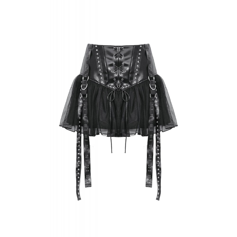 Punk rebel PU mesh mini skirt / スカート【DARK IN LOVE】 [KW331]