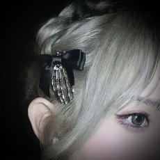 スケルトンハンド&サテンリボンのヘアクリップ♪