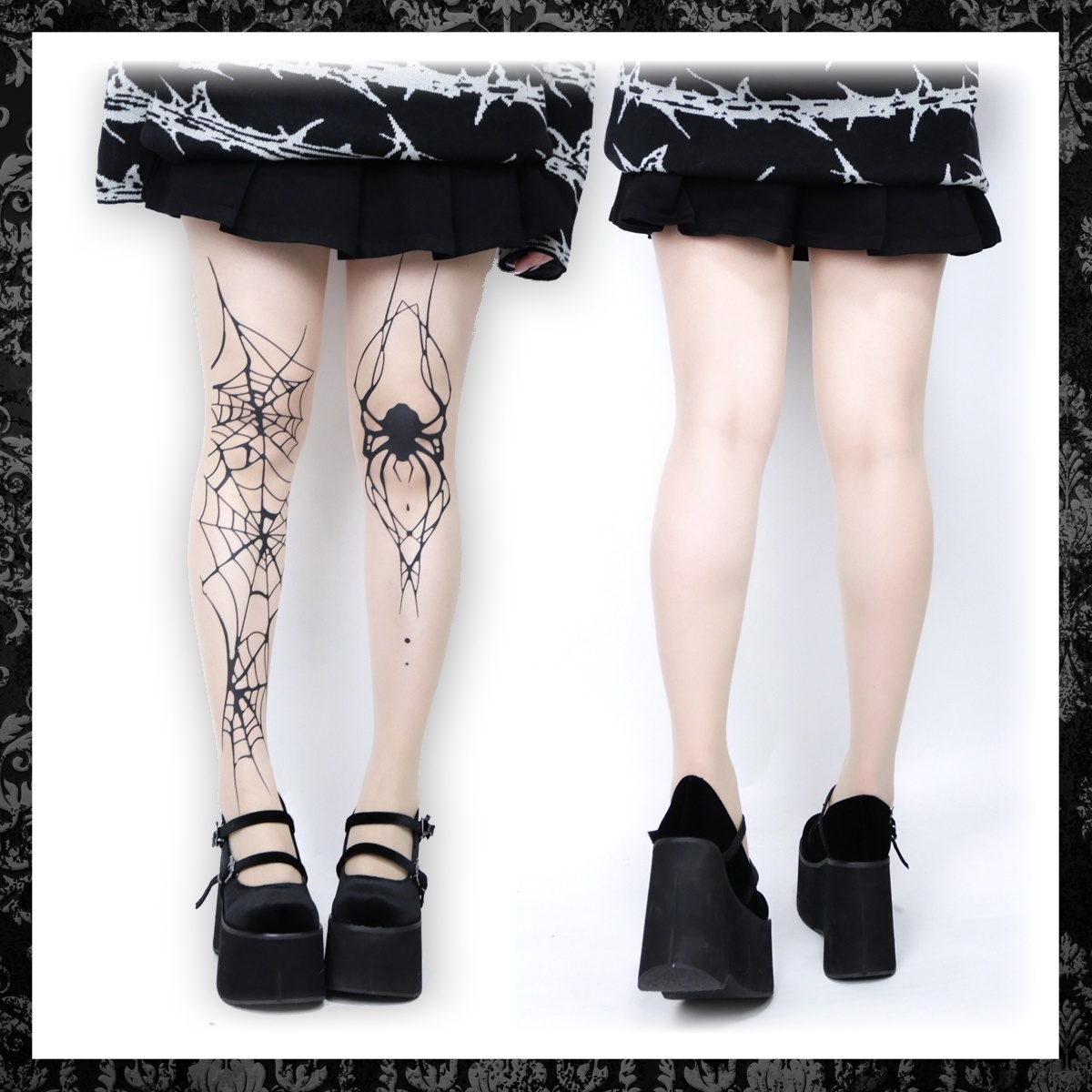 ゴシックな蜘蛛と蜘蛛の巣柄のタトゥーストッキング♪