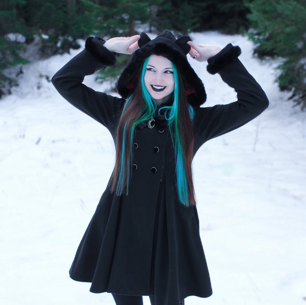 猫耳付きのゴシックなAラインコート