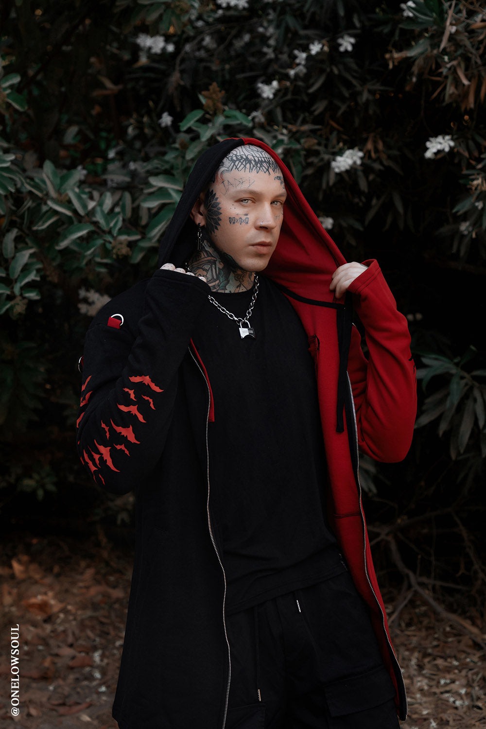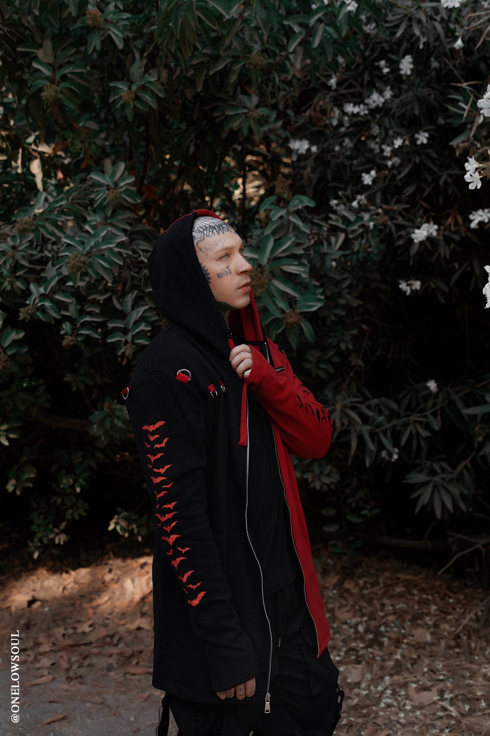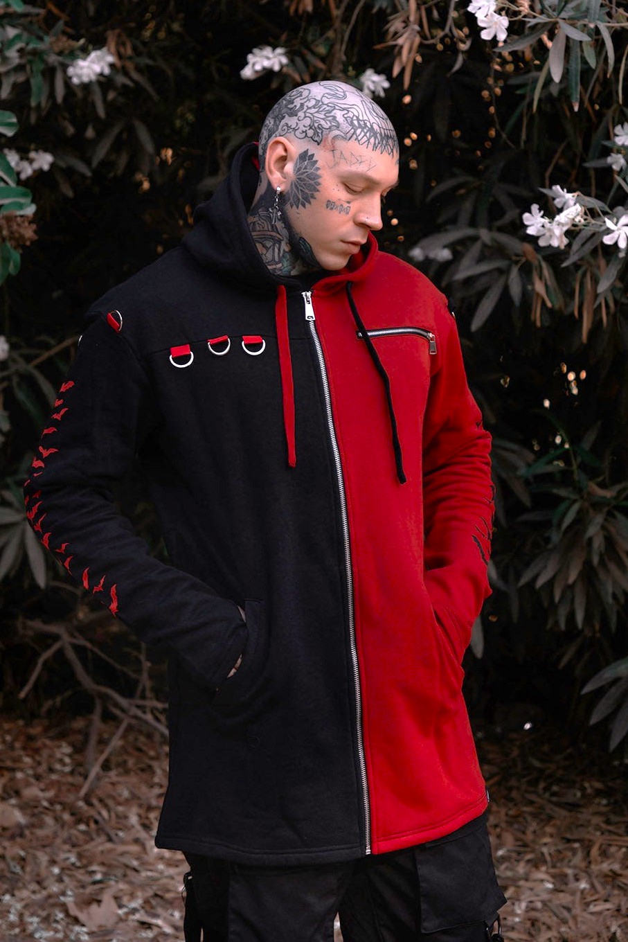 - 赤と黒ツートンのゴシックスプリットパーカー
