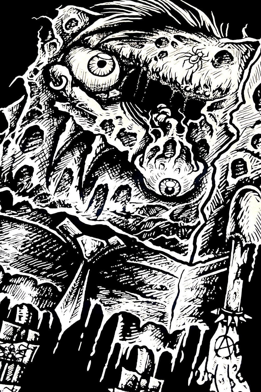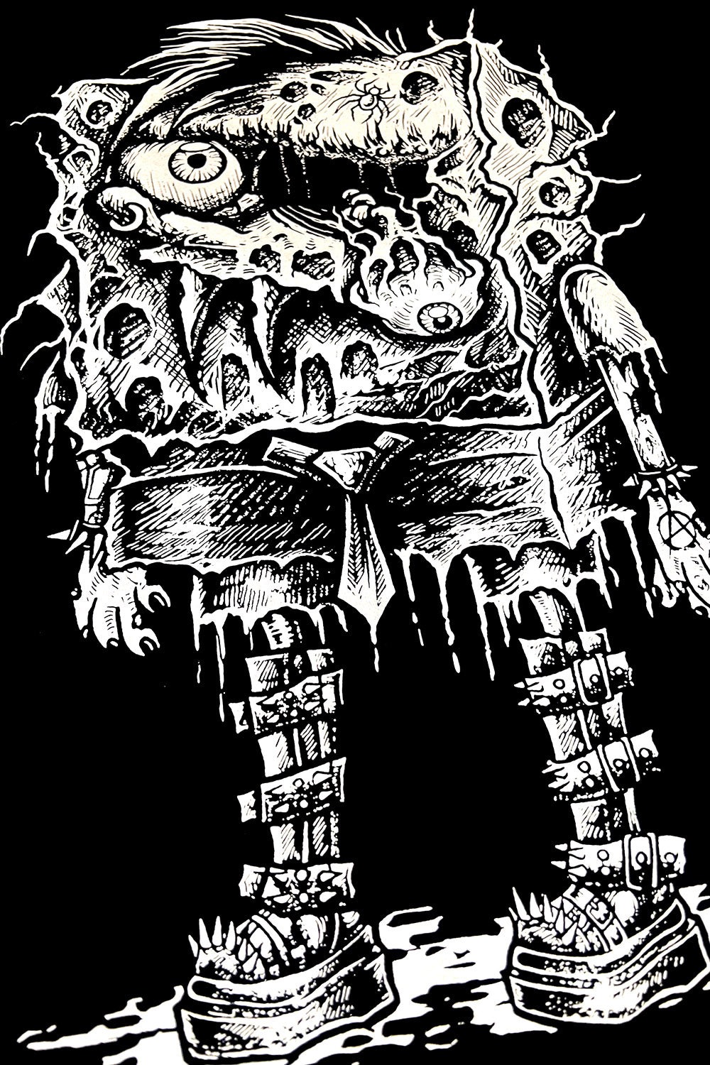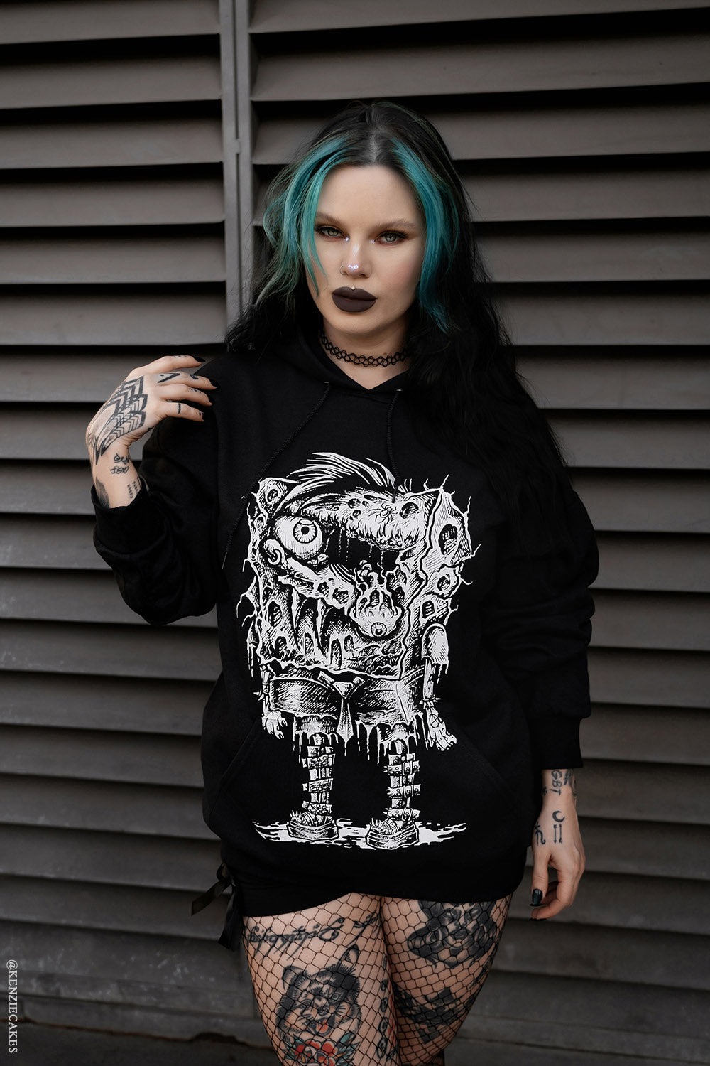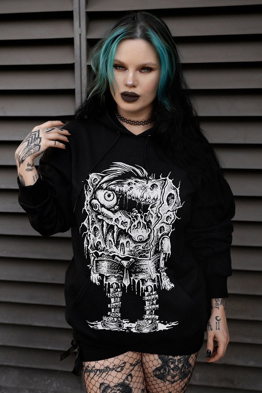 - 目がただれ、牙が生えているスポンジ君パーカー
