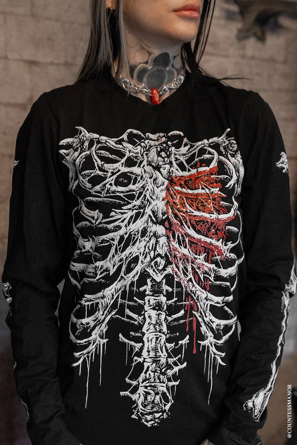 Bleeding Heart Skeleton / 心臓を蝕む血の影 / ロングスリーブTシャツ【VampireFreaks】 [VFLS297-5-M]