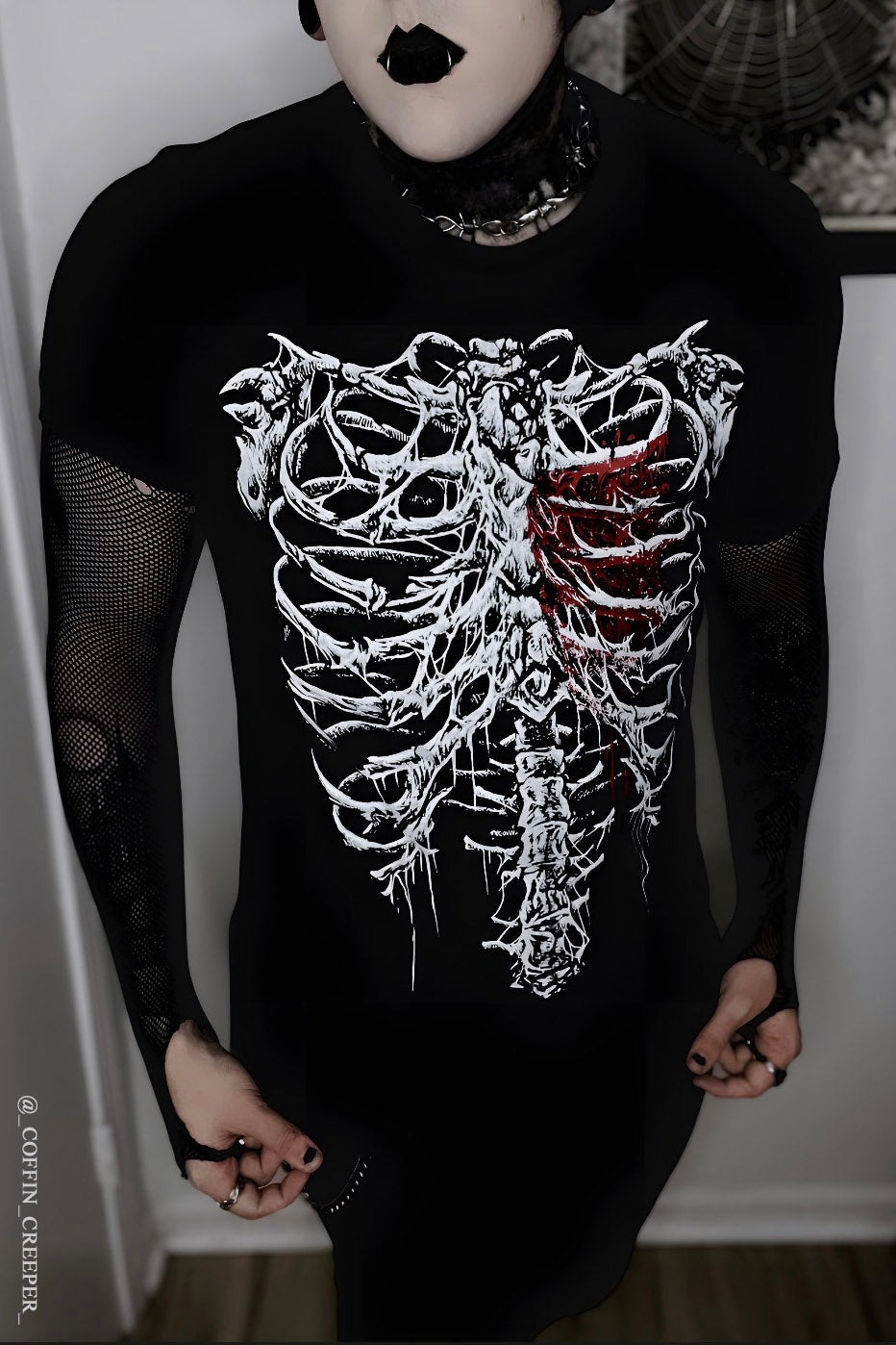 Bleeding Heart Skeleton / 心臓を蝕む血の影 / Tシャツ【VampireFreaks】 [VFMT297-M]