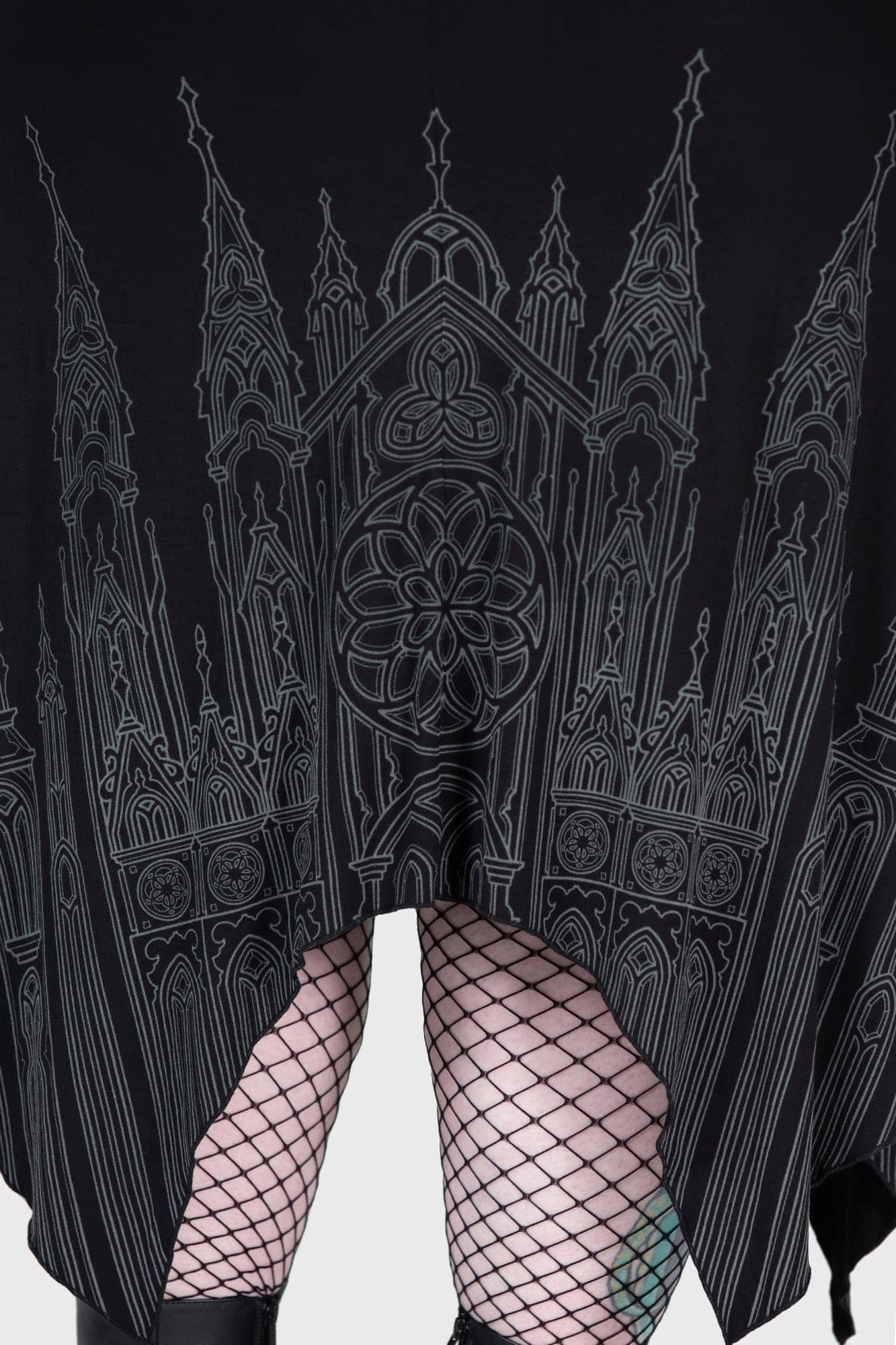 大聖堂モチーフのダークでエレガントなマキシドレス