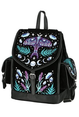 - 蛾、シダの葉、小さな星、月の満ち欠け、クリスタル、ラベンダーの花の刺繍