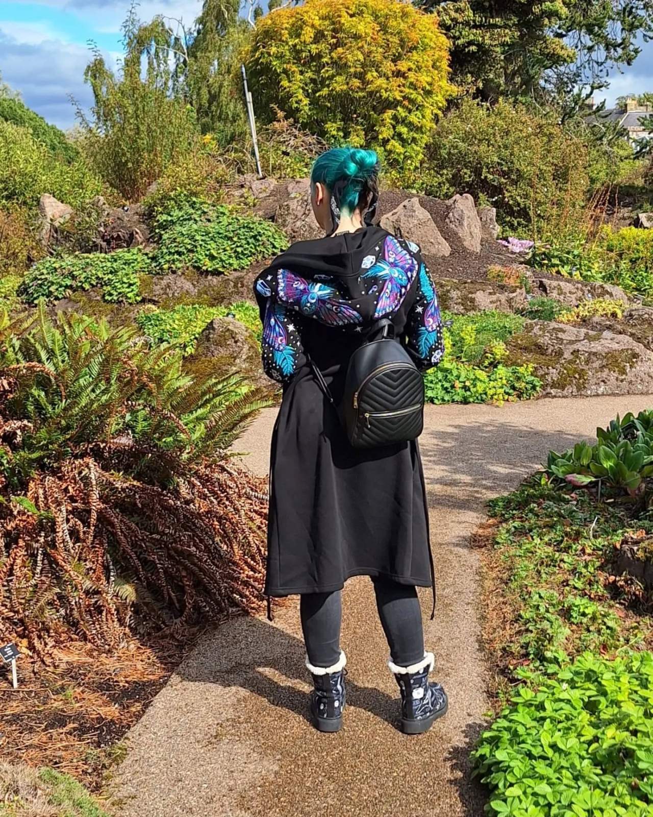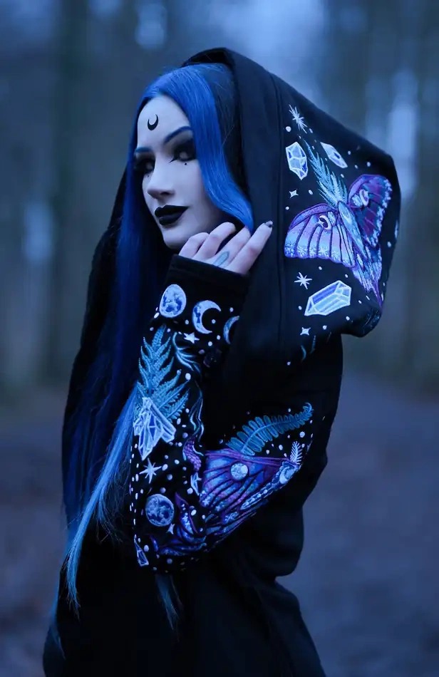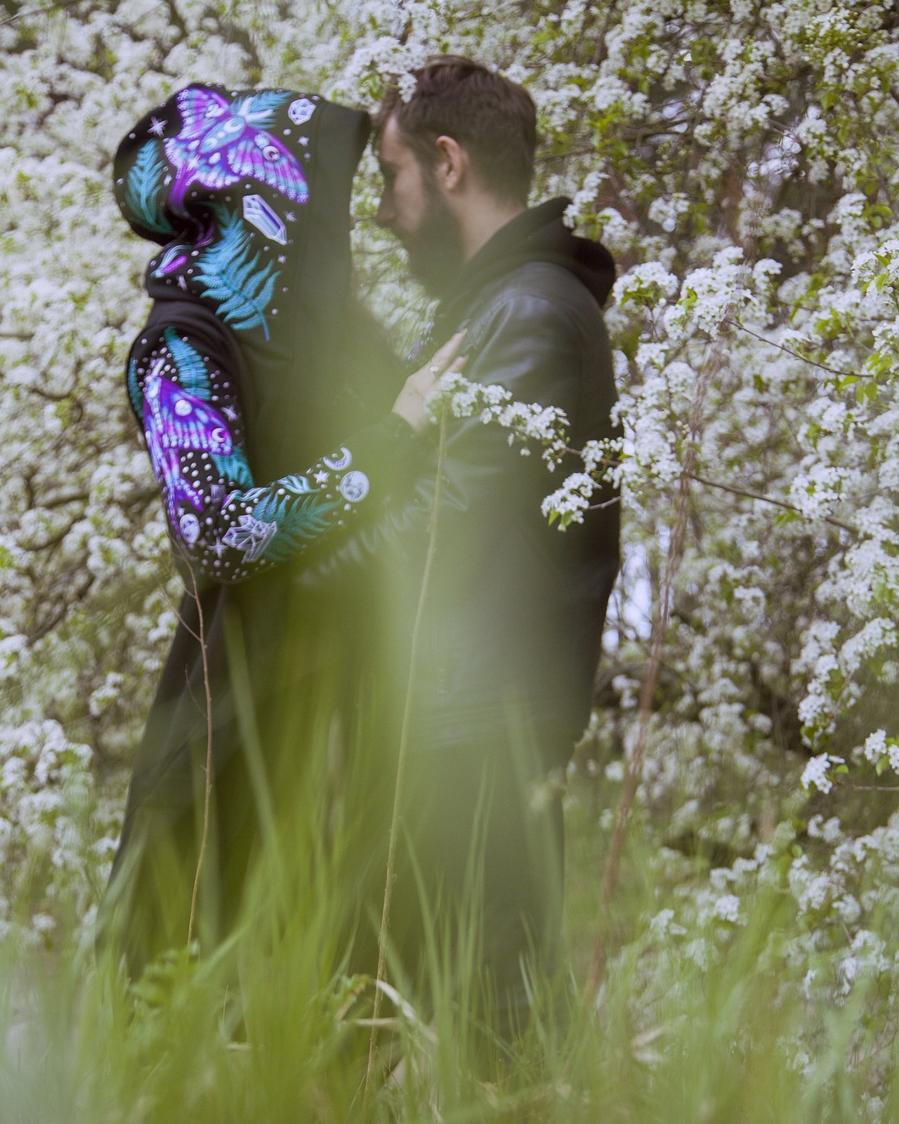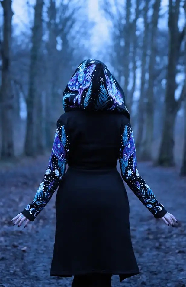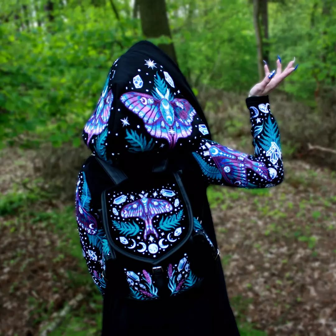 蛾とシダの葉の刺繍が綺麗な裏起毛素材のパーカー。