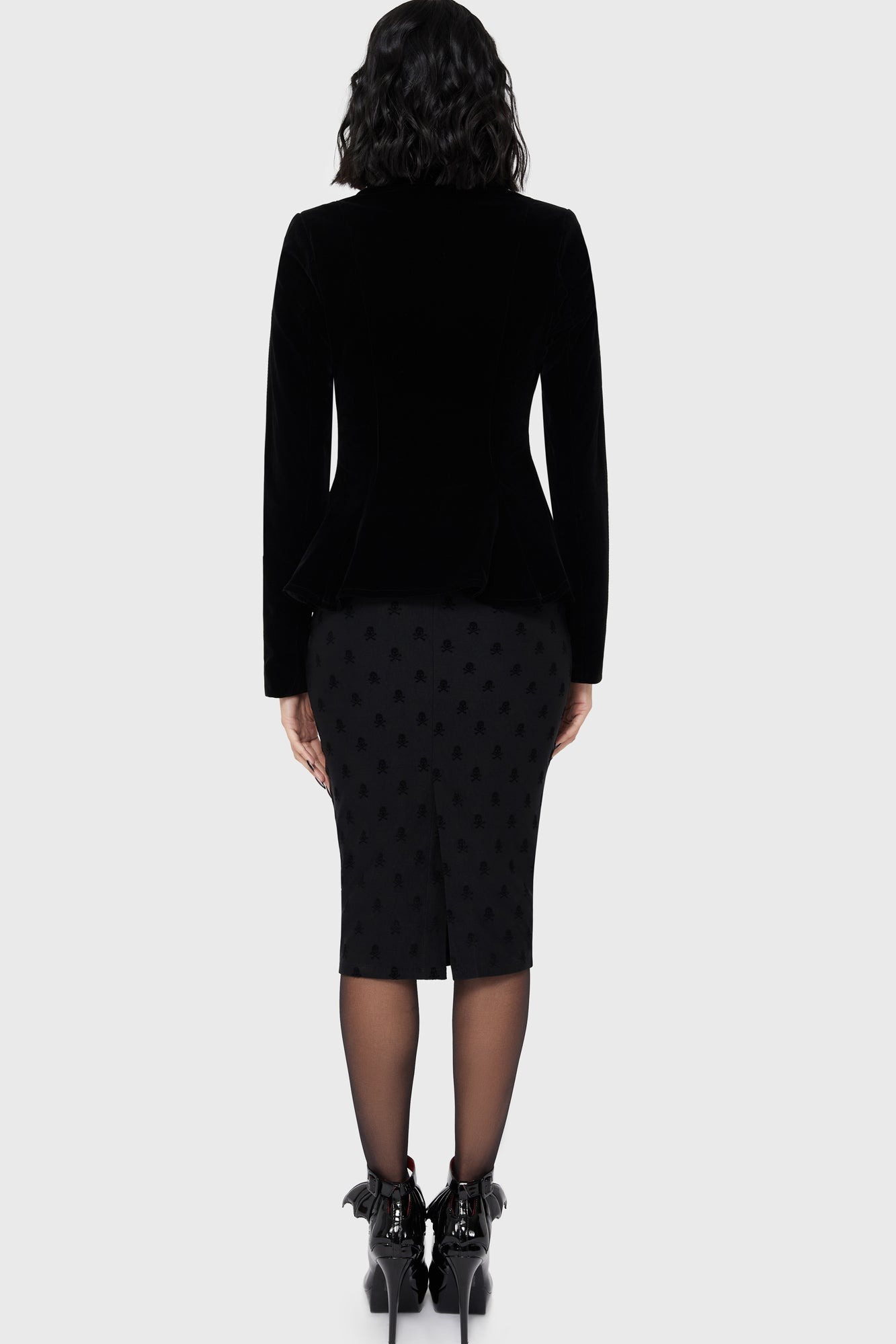 優雅なラペル、ウエストを引き締めるテーラードシルエットで、闇の中でも際立つ存在感を。