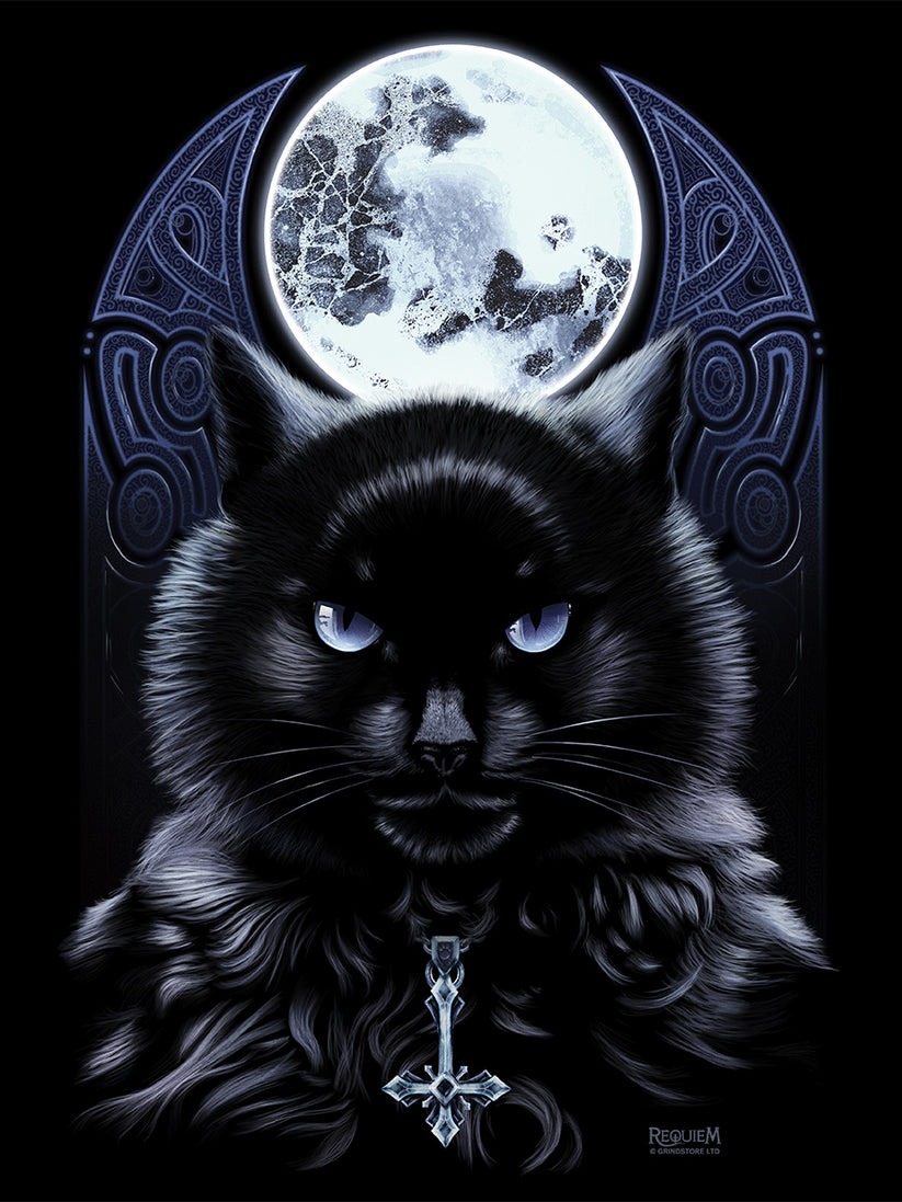 満月を背にして魅惑的な瞳を持つ黒猫は、