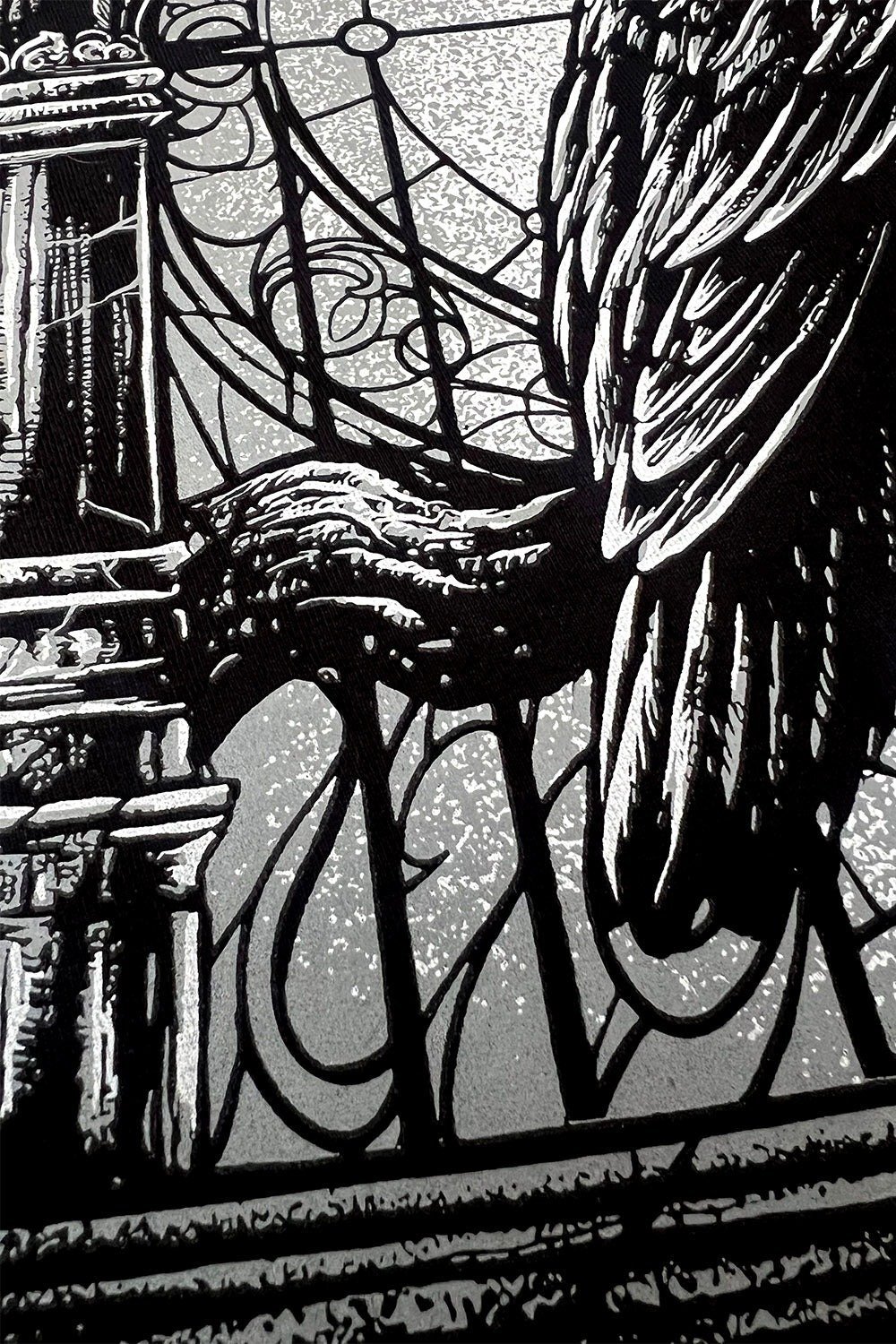 ゴシック大聖堂とカラスのグラフィックTシャツ