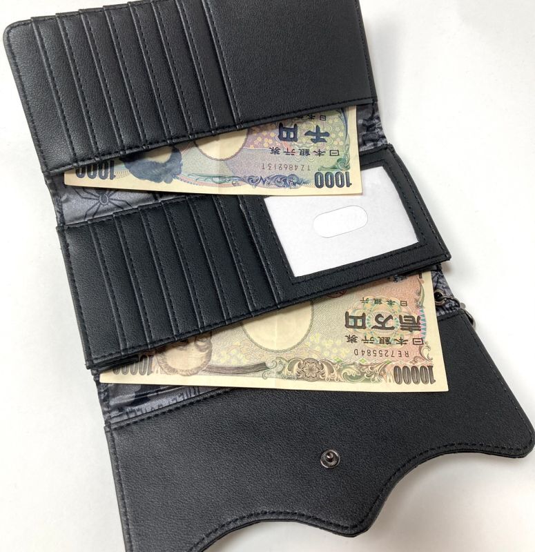 - カードスペース14枚、IDホルダー1つ、内側の開口部2つ、バックジッパー開口部