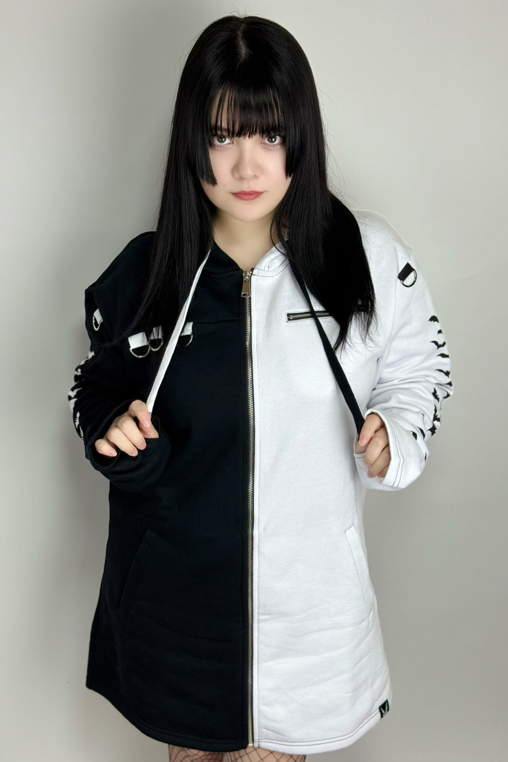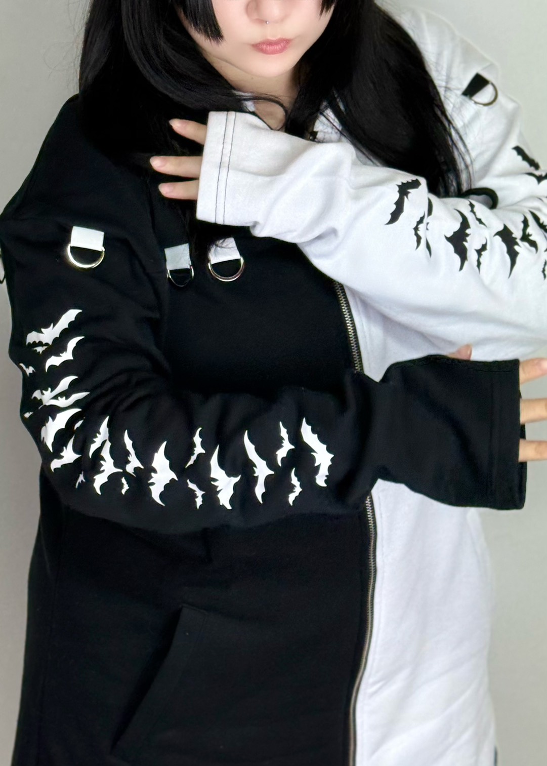 - 白と黒ツートンのゴシックスプリットパーカー