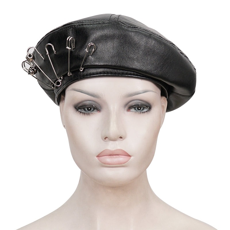 Pin Skull Faux Leather Beret / ベレー帽【Devil Fashion】 [AS134]