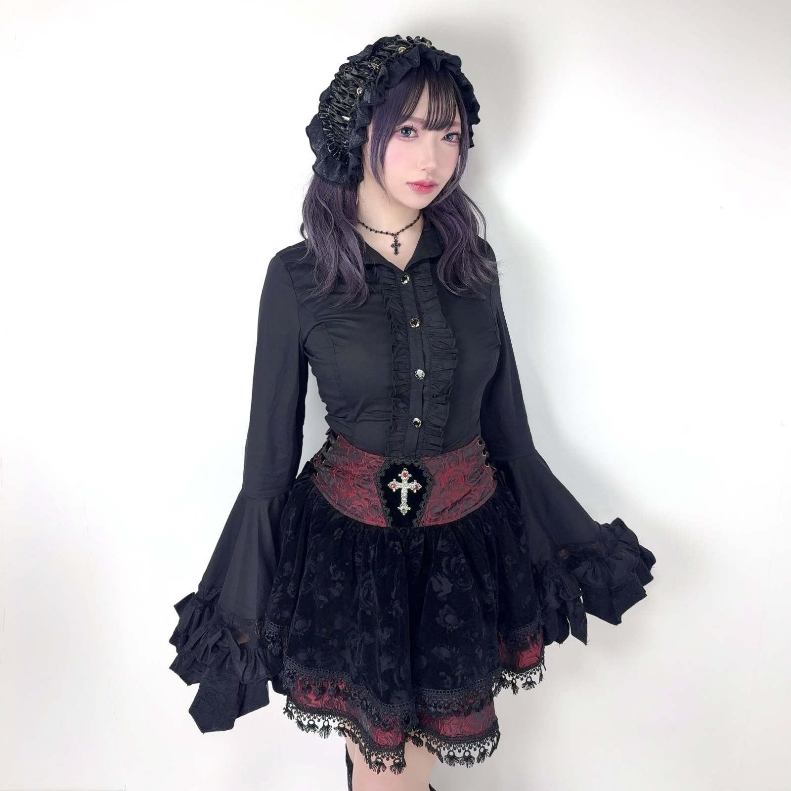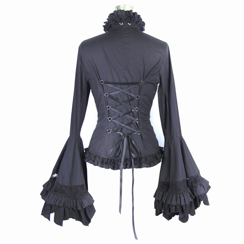 Women gothic big flared sleeves lace up blouse / ブラウス【Devil Fashion】 [SHT00901]