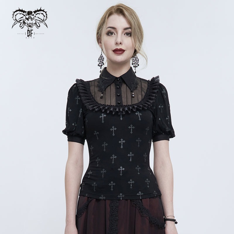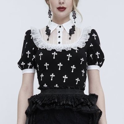 Black Cross pattern / ブラウス【Devil Fashion】 [TT22201]