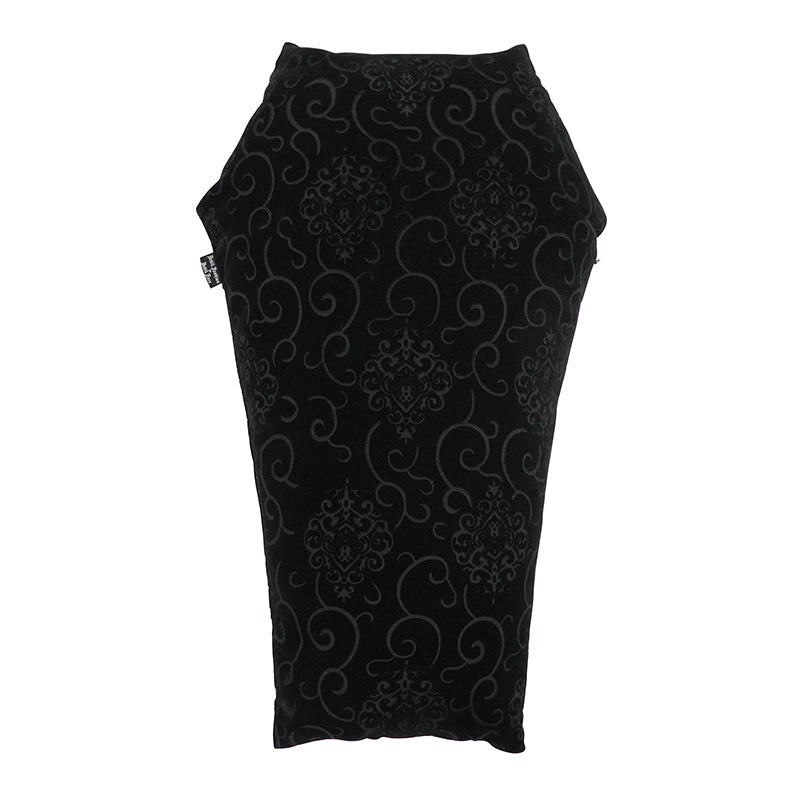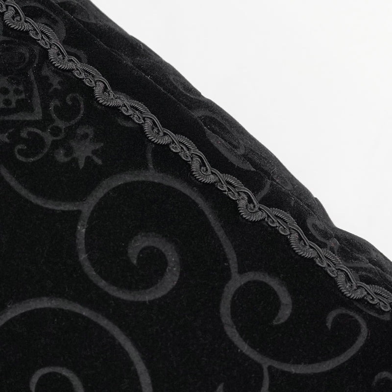 - バーガンディ色のベルベットの前面にスケルトンプリント