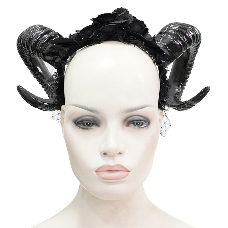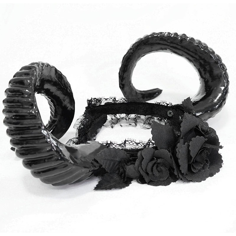 ゴシックな黒薔薇と大きな角が付いたカチューシャ