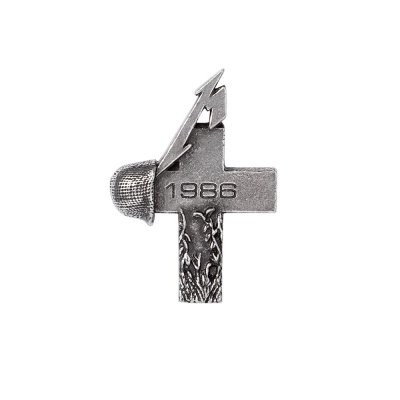 2つのクラッチピンが付いた3D彫刻ピューターピンバッジ。