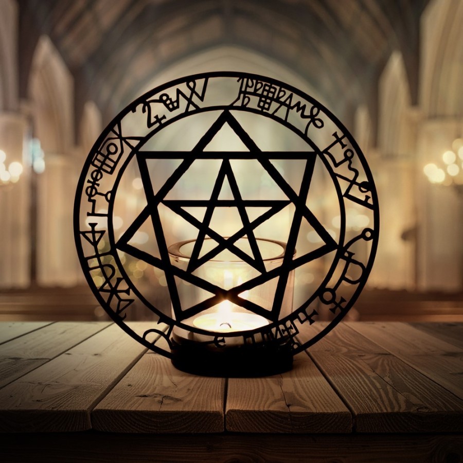 天使と悪魔の印章のティーライトホルダー。