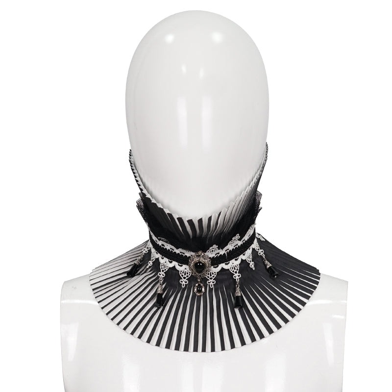 Gothic pleated black and white turtleneck collar / ネックカバー【Devil Fashion】 [AS124]