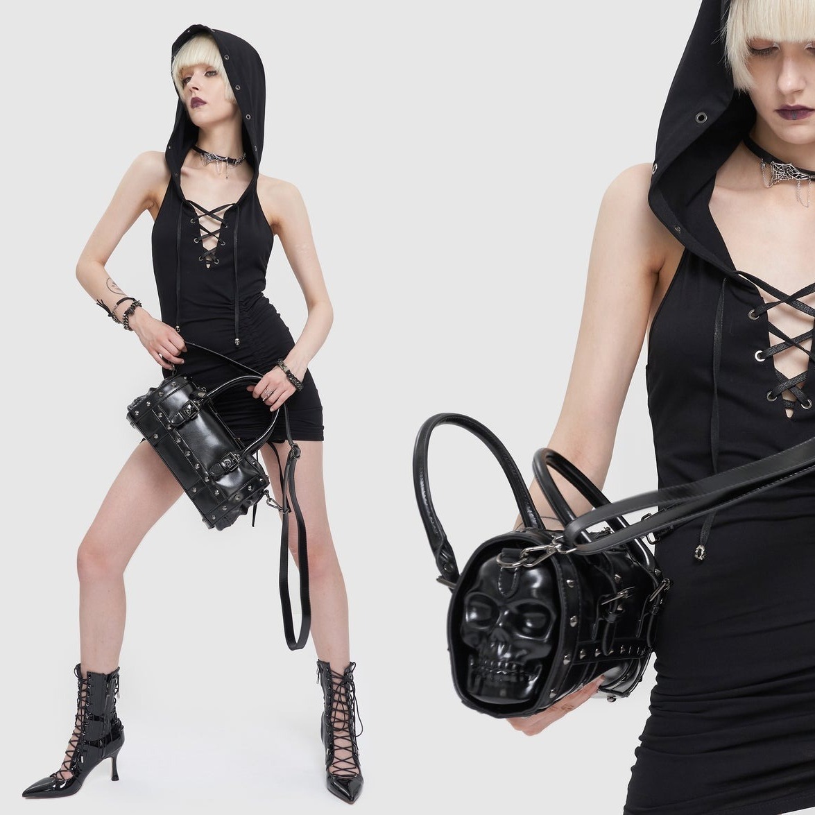 骸骨モチーフが映えるゴシックミニボストンバッグ