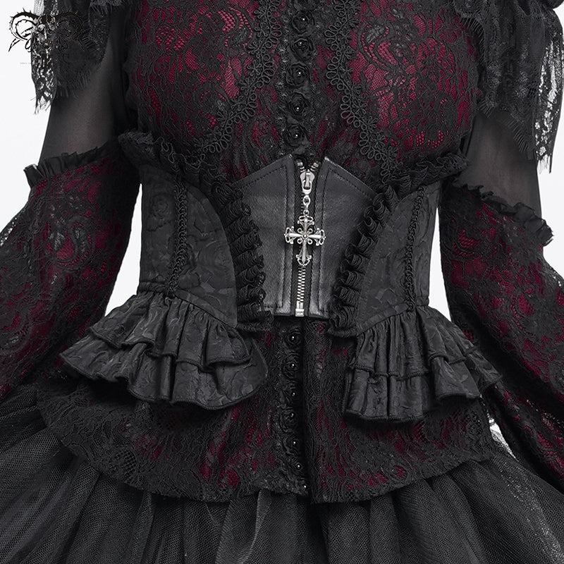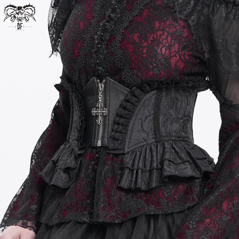 Gothic rose zipper jacquard corset / コルセットベルト【Devil Fashion】 [AS20901]