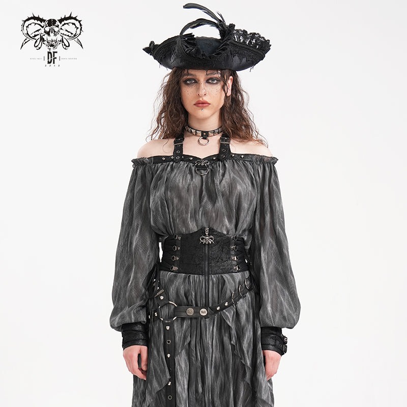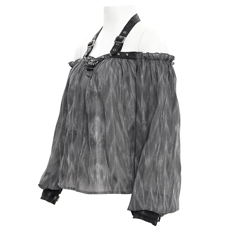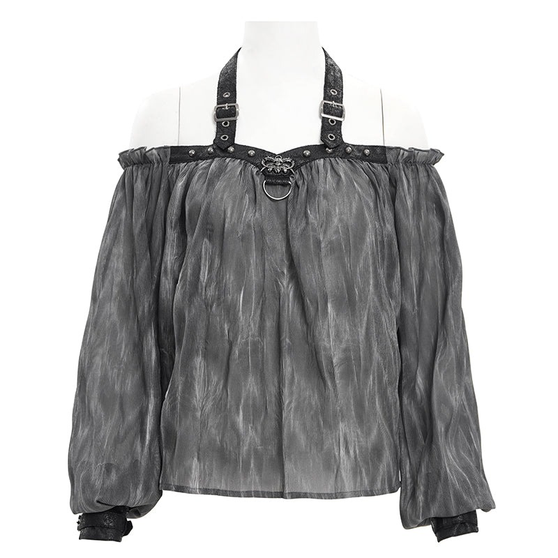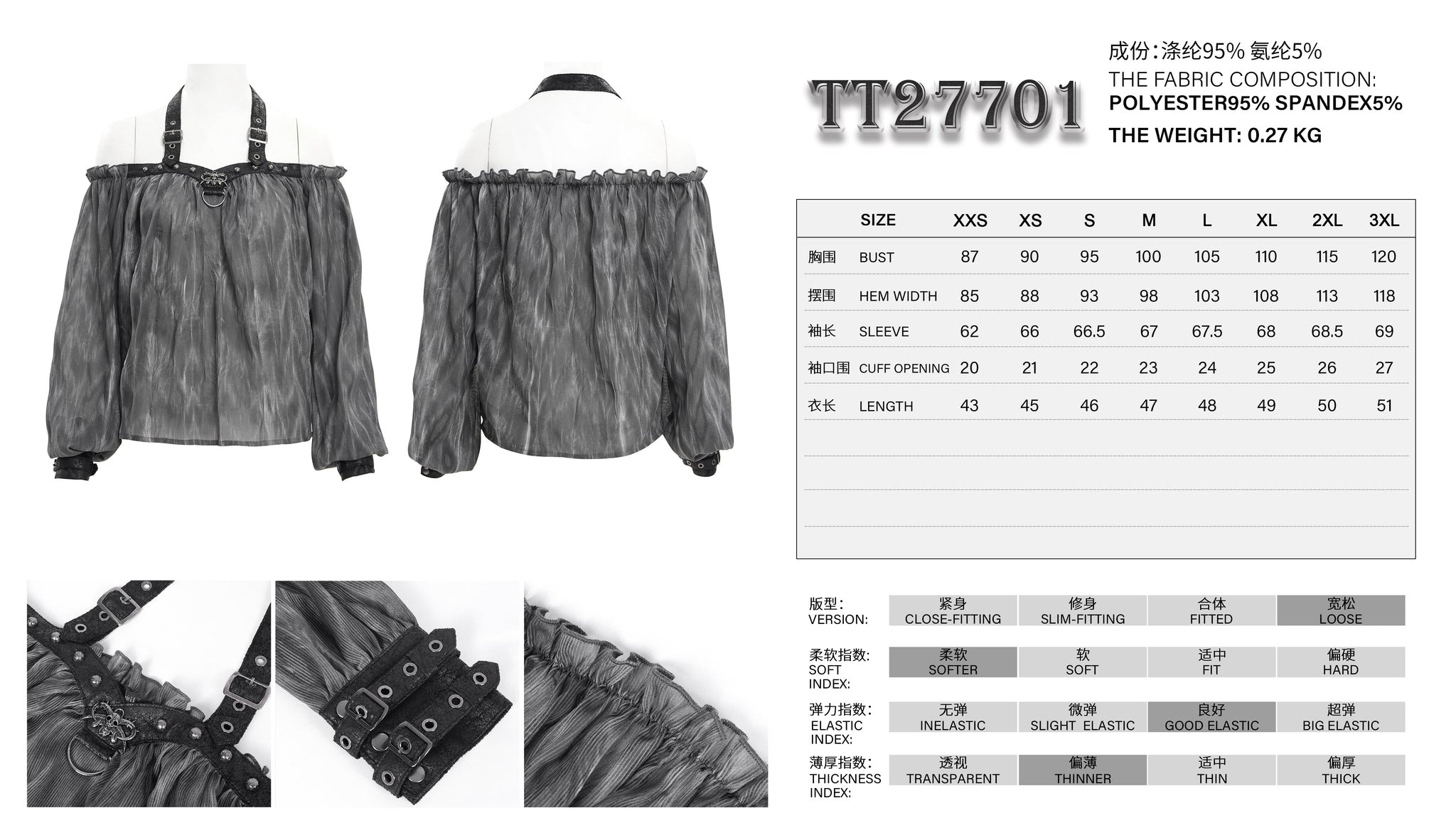Halter neck off shoulder long sleeve loose T-shirt / ブラウス【Devil Fashion】 [TT27701]