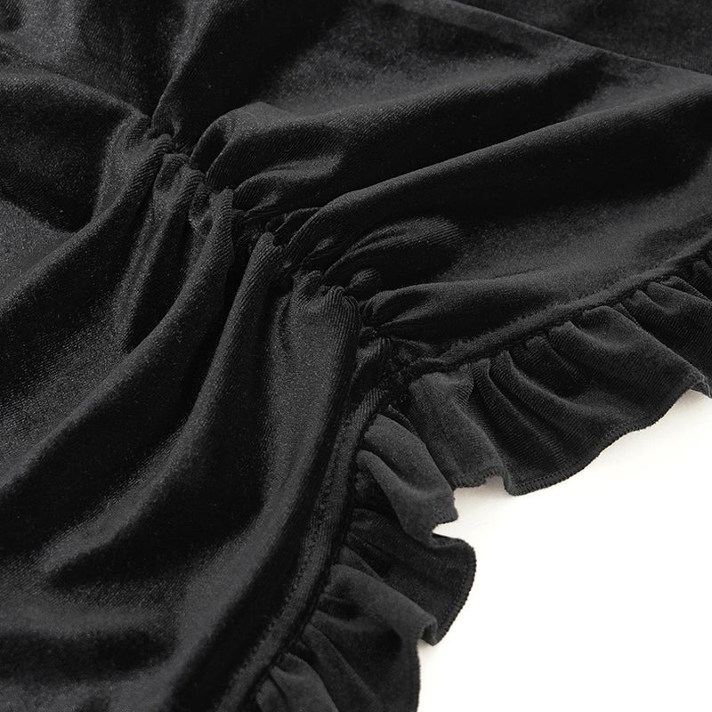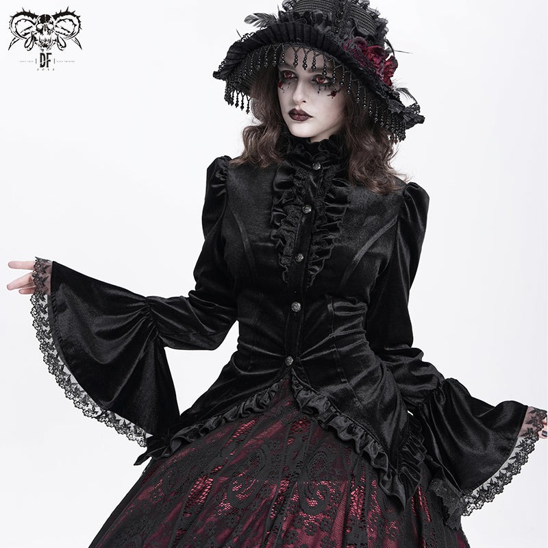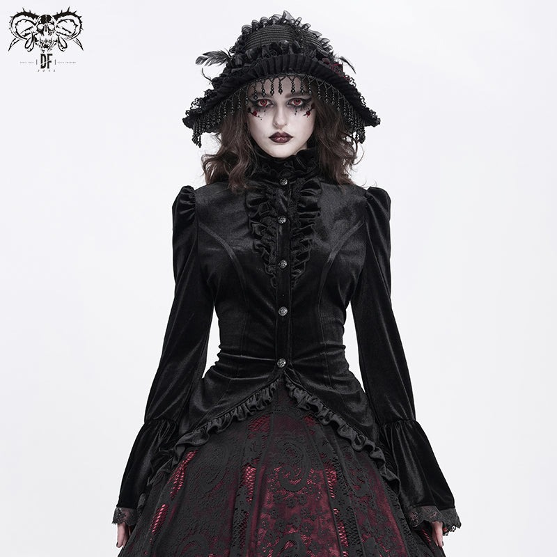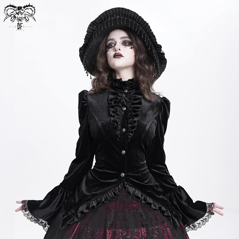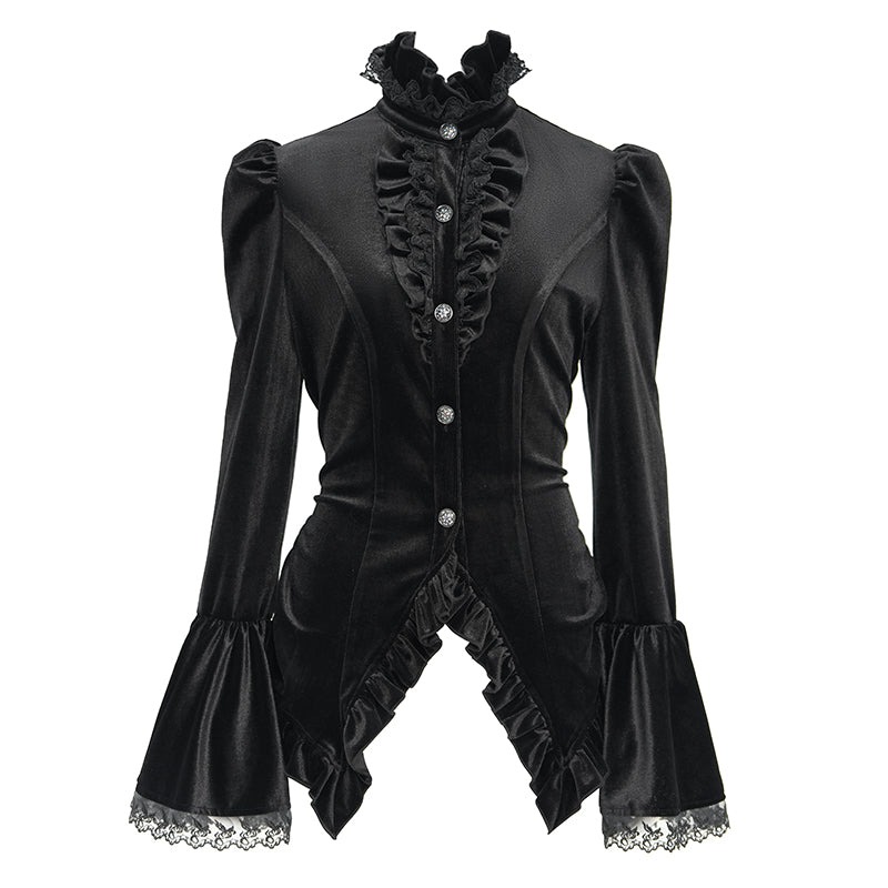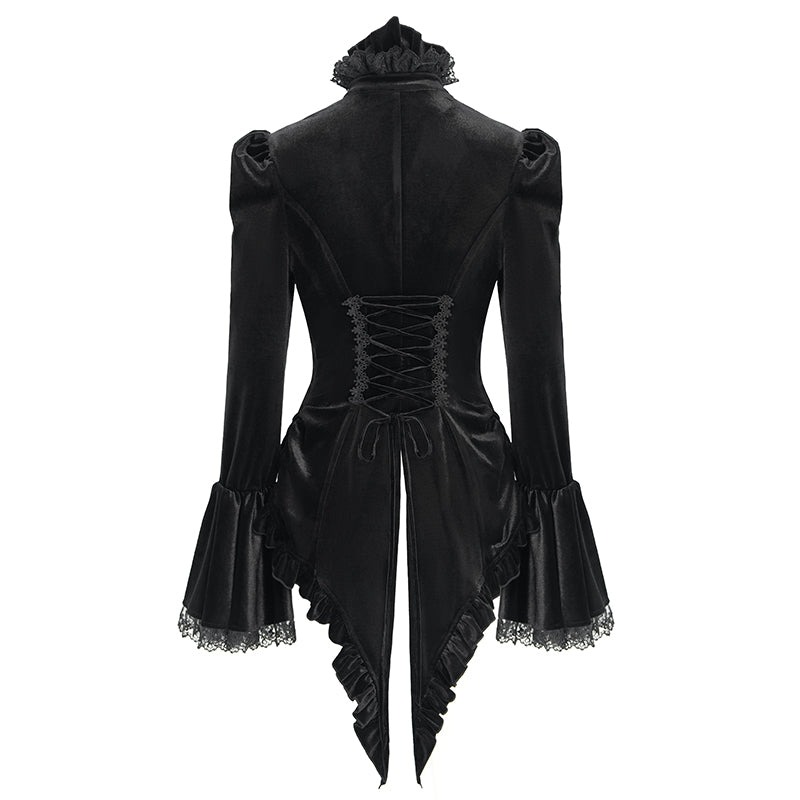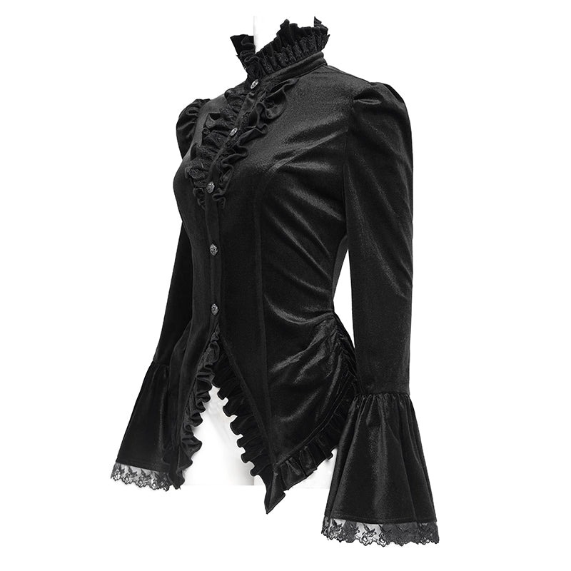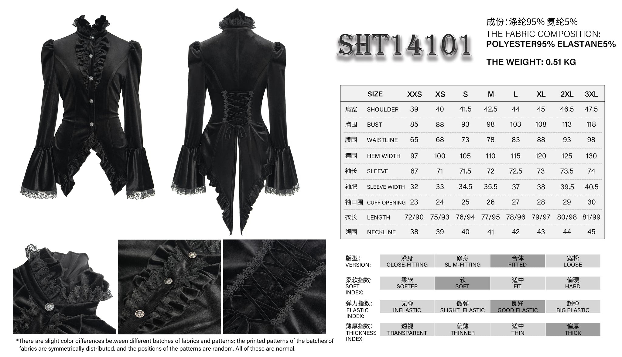 Black Glossy Velvet Swallowtail Shirts / ブラウス【Devil Fashion】 [SHT14101]