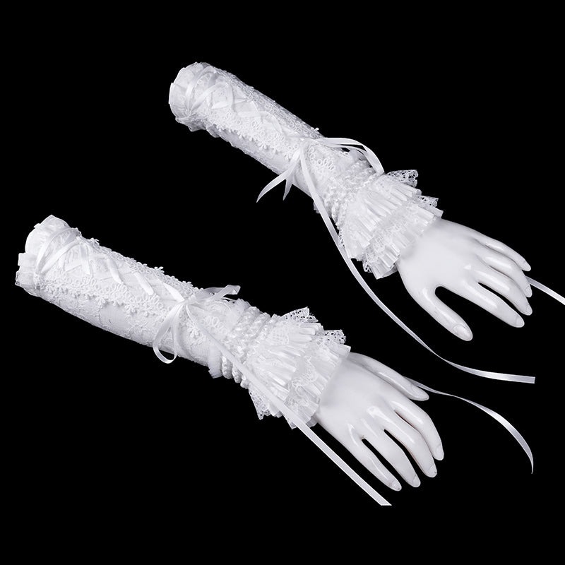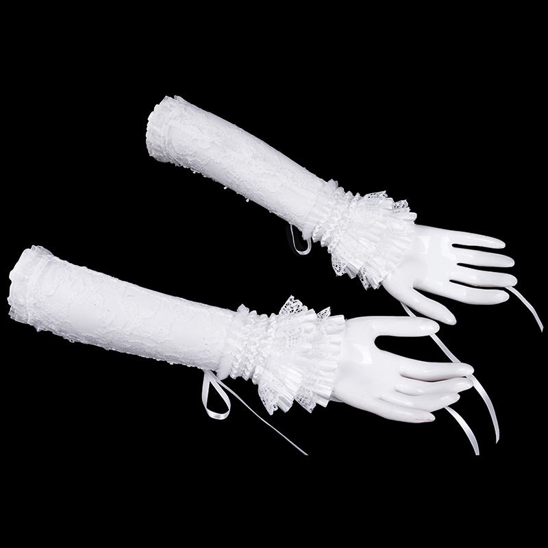Lolita White Rose Flower Lace Gloves / アームカバー【Devil Fashion】 [GE03702]