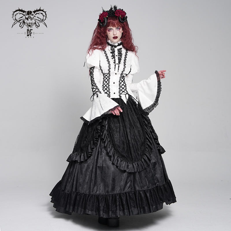 White Love-shaped Jacquard Gothic Blouse / ブラウス【Devil Fashion】 [SHT14202]