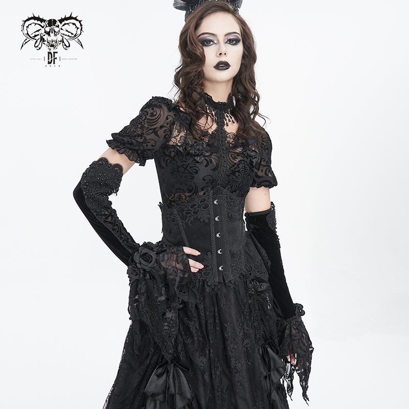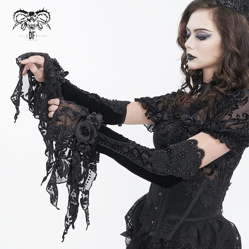 Velvet and embroidered flower sleeves / アームカバー【Devil Fashion】 [GE035]
