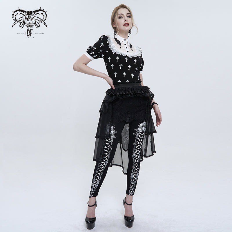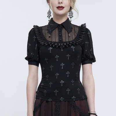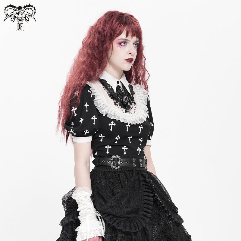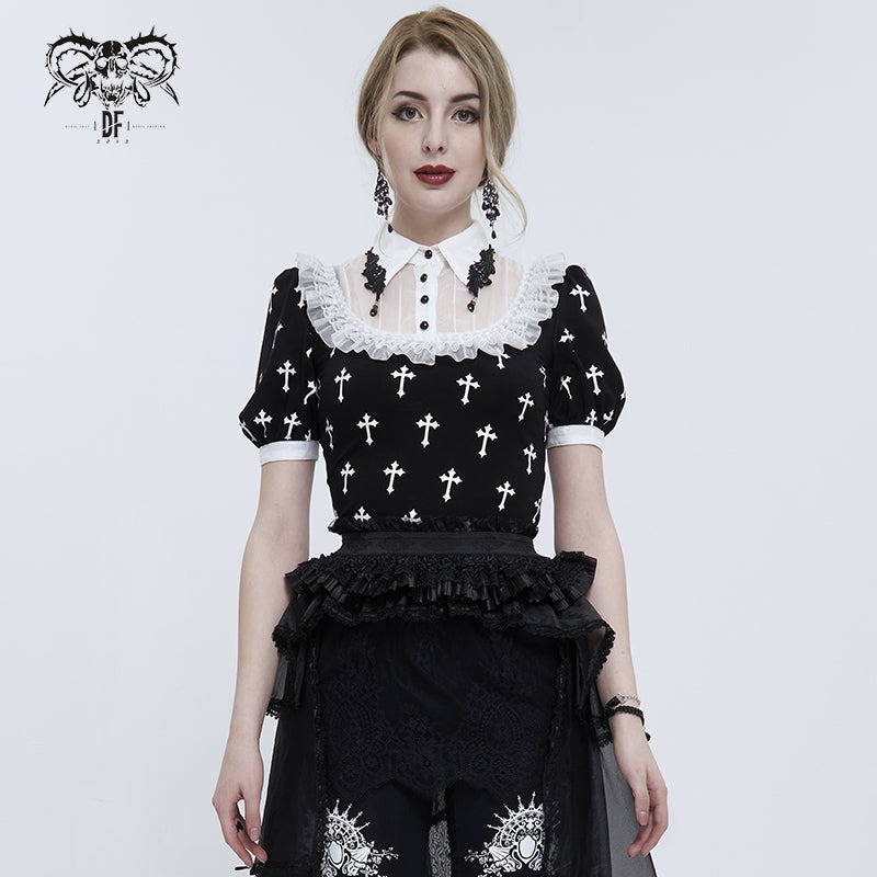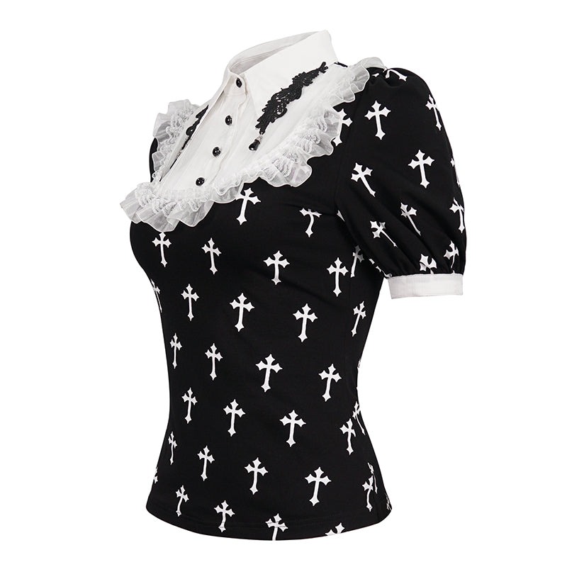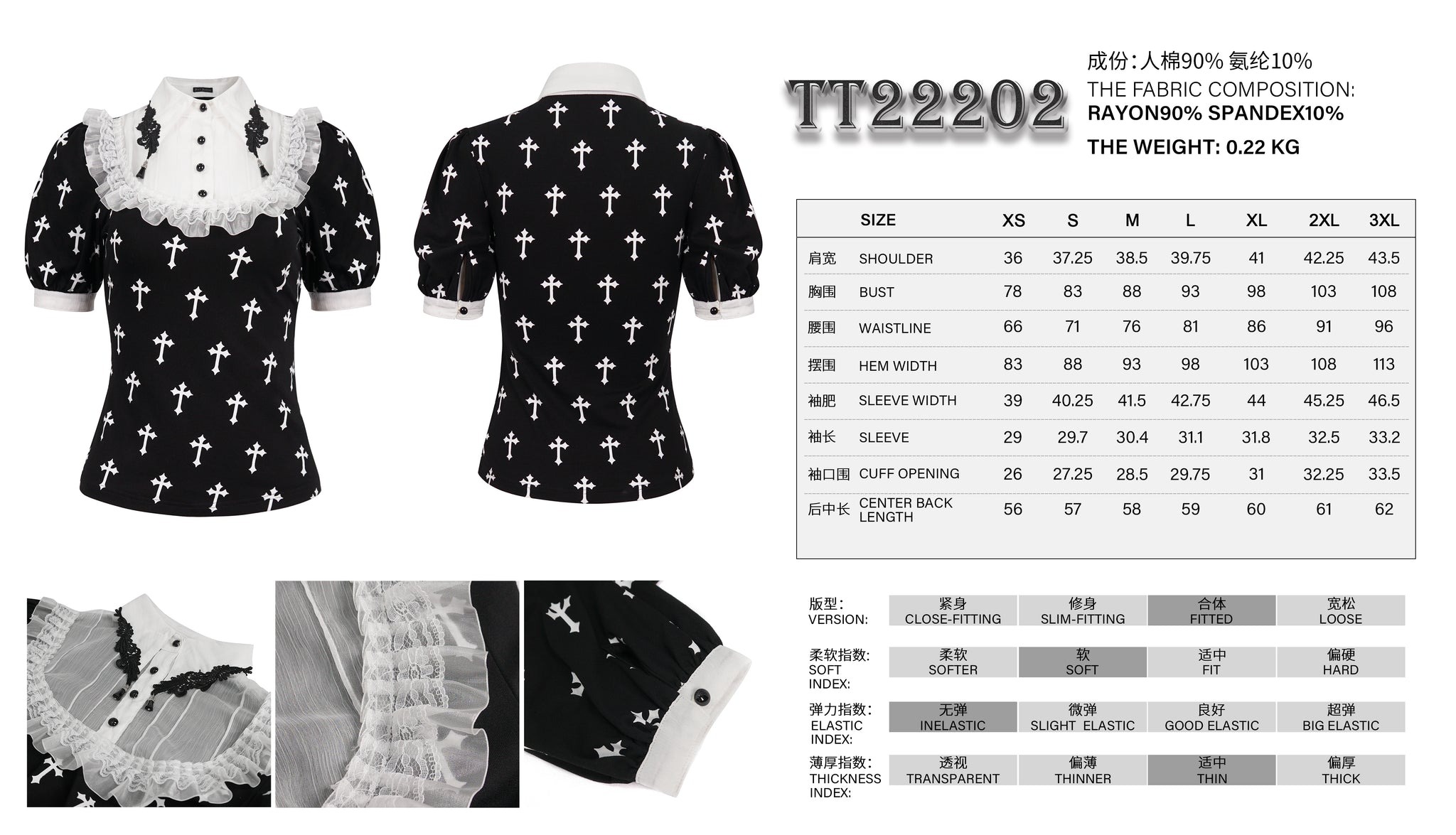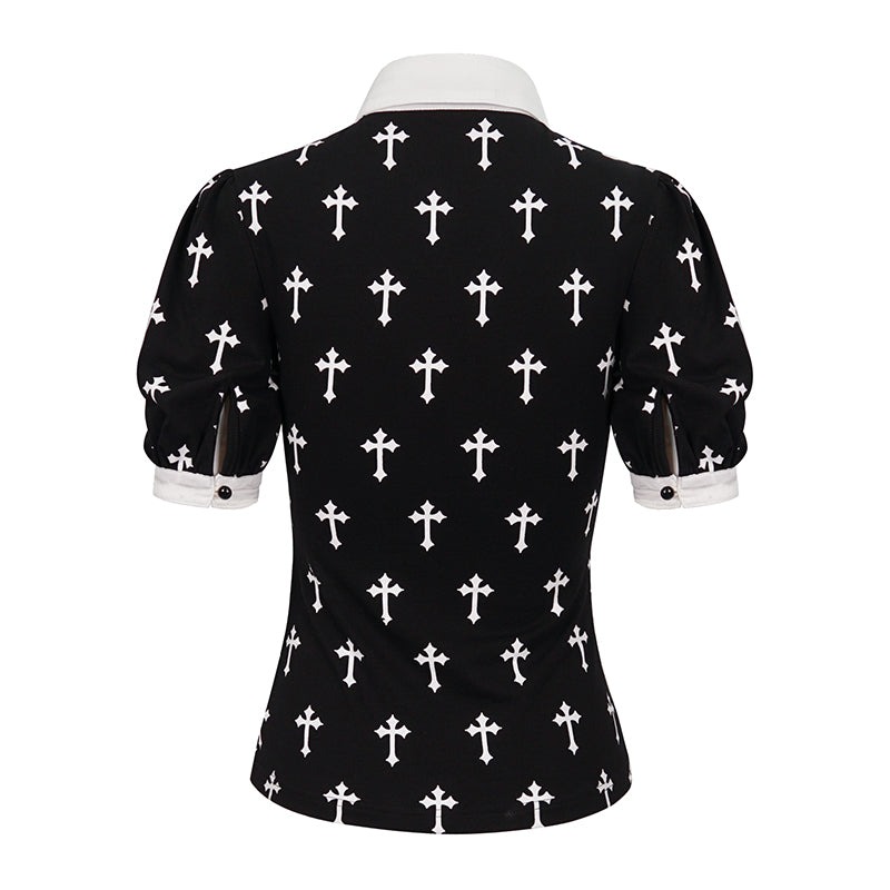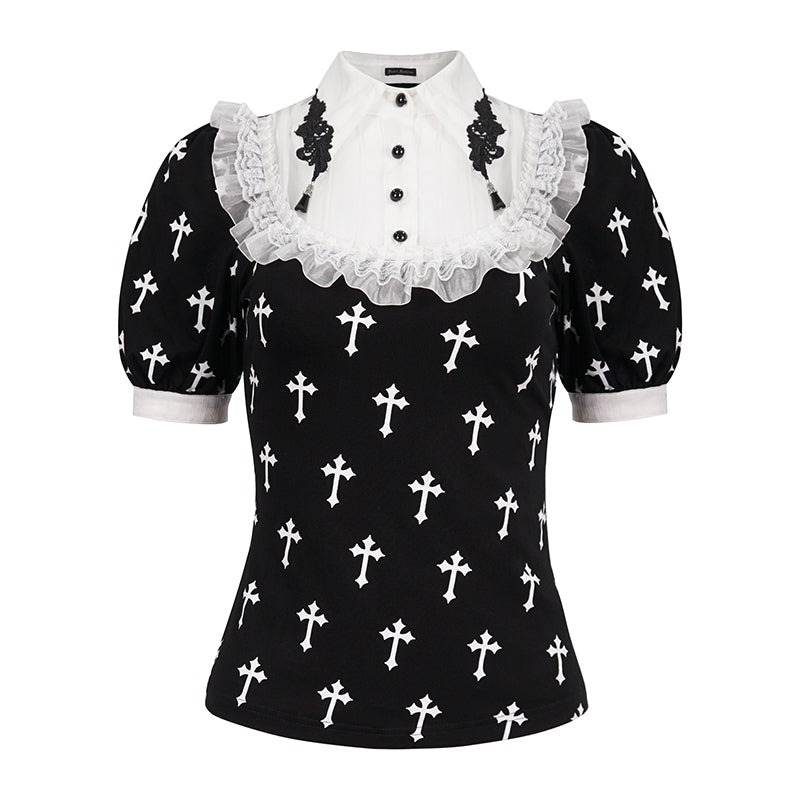 Black And White Cross pattern / ブラウス【Devil Fashion】 [TT22202]