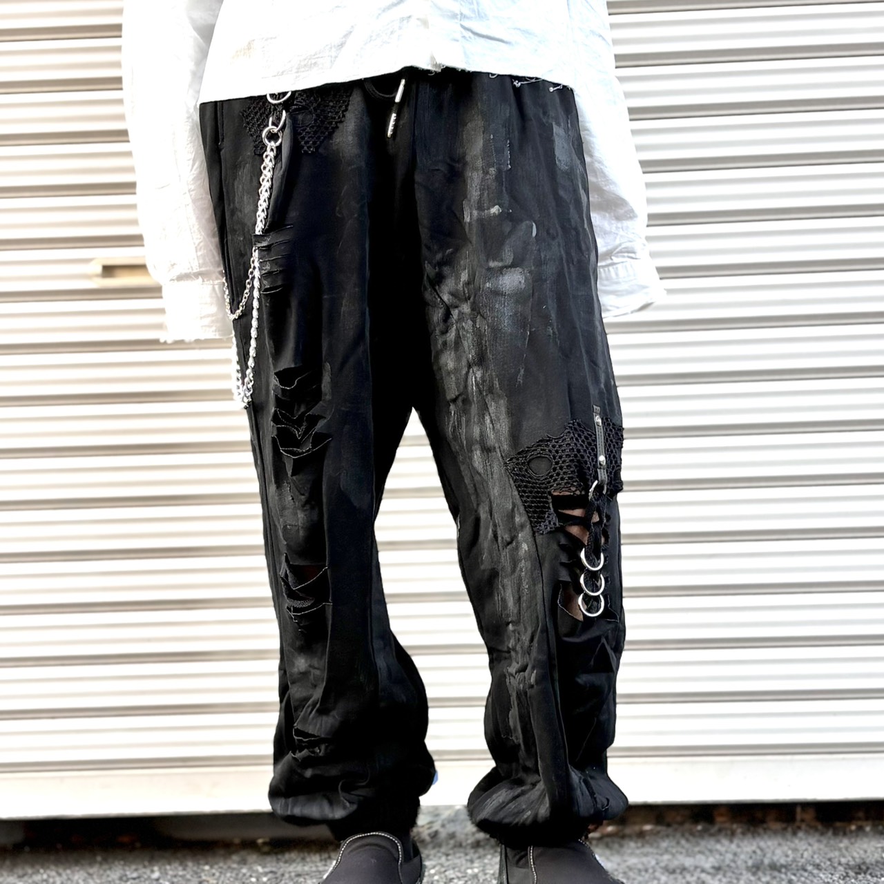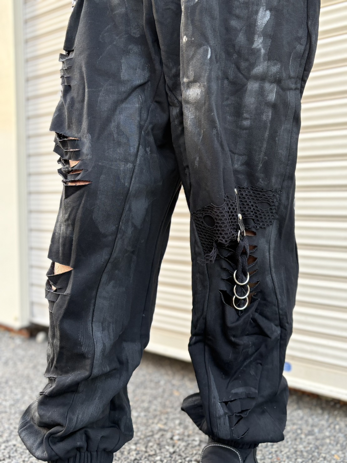 Distressed burnt out hand-painted trousers / ジョガーパンツ【Devil Fashion】 [PT174]