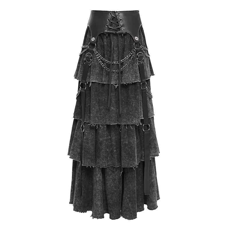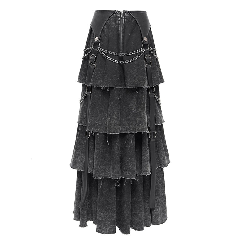 Punk distressed long tiered skirt / スカート【Devil Fashion】 [SKT233]