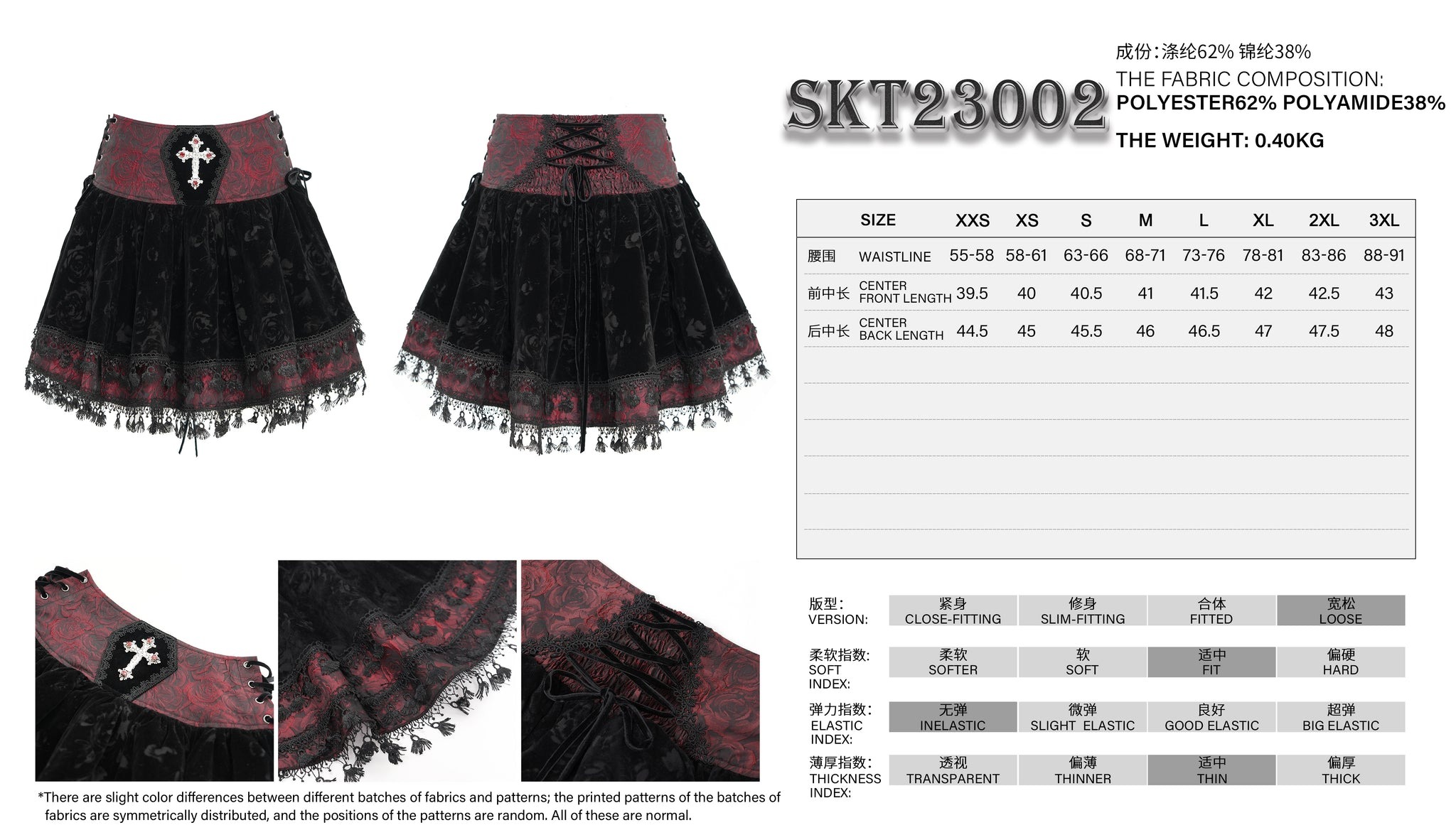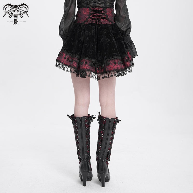 Red and Black Summer Girls Gothic Rose Jacquard Skirts / スカート【Devil Fashion】 [SKT23002]