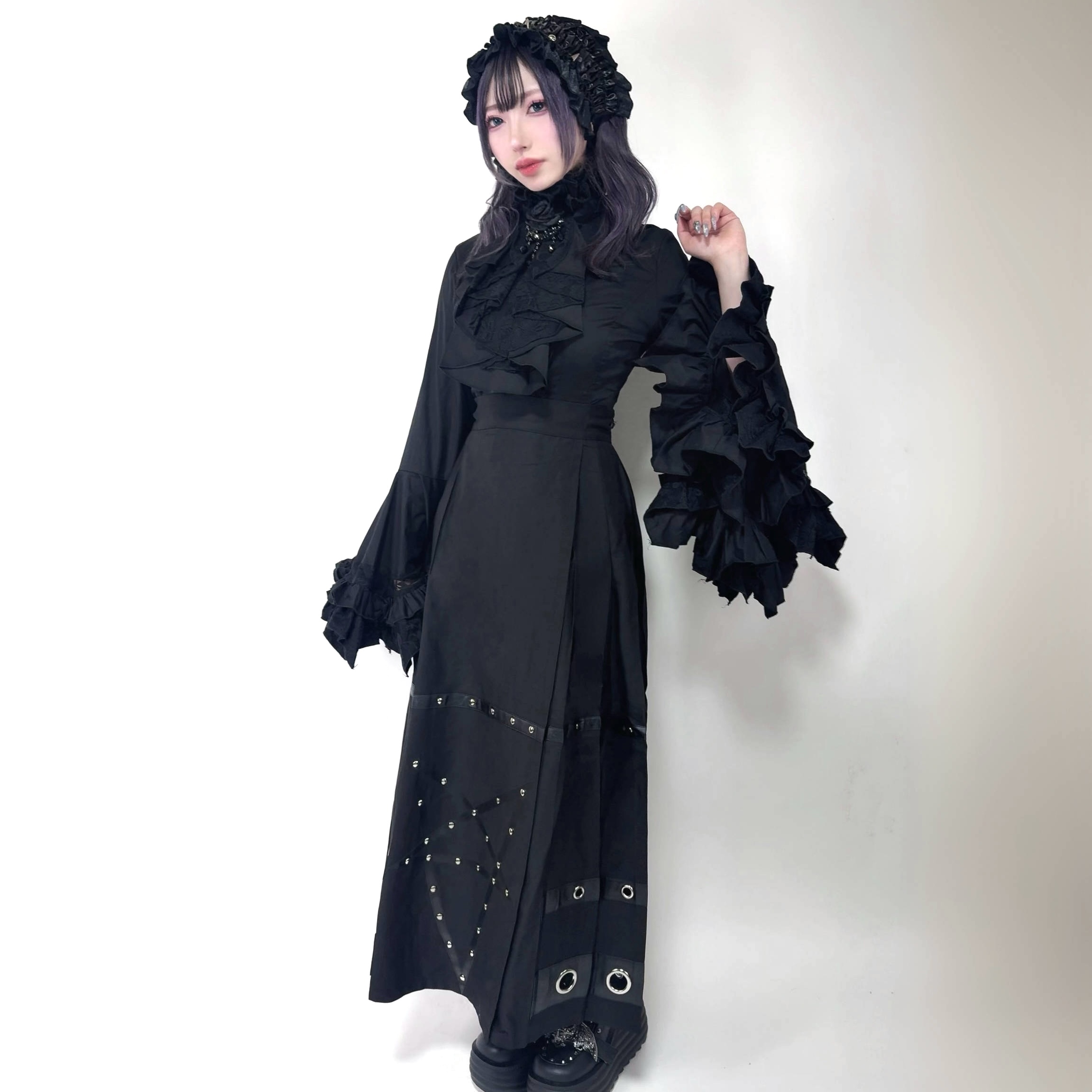 ゴスパンクなプリーツロングスカート