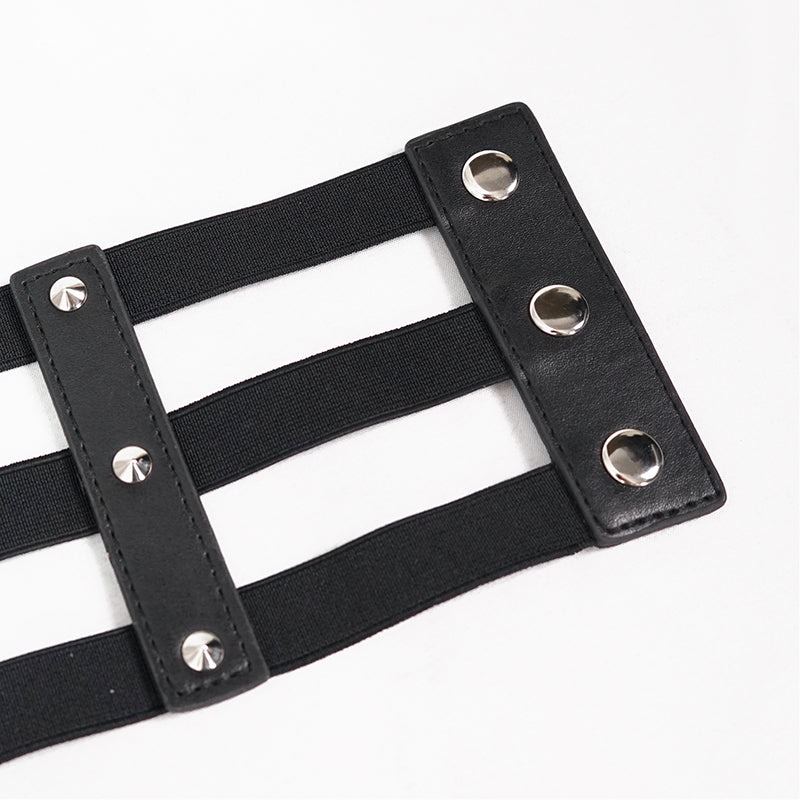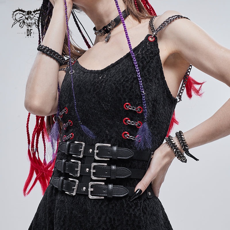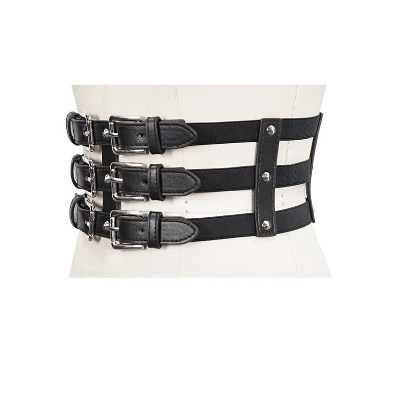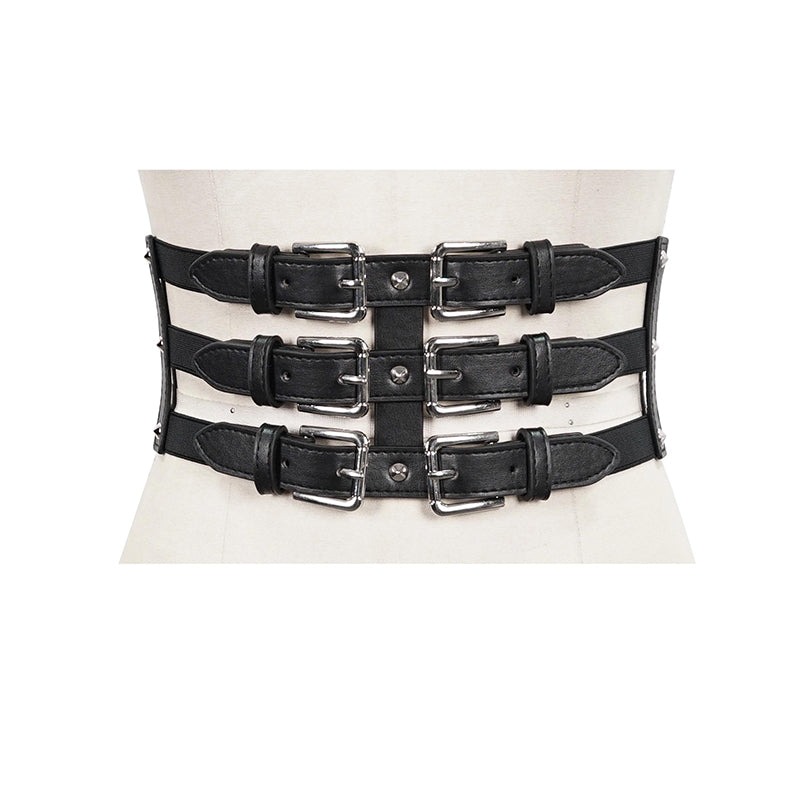 Punk three horizontal metal buckle girdle / コルセットベルト【Devil Fashion】 [AS096]