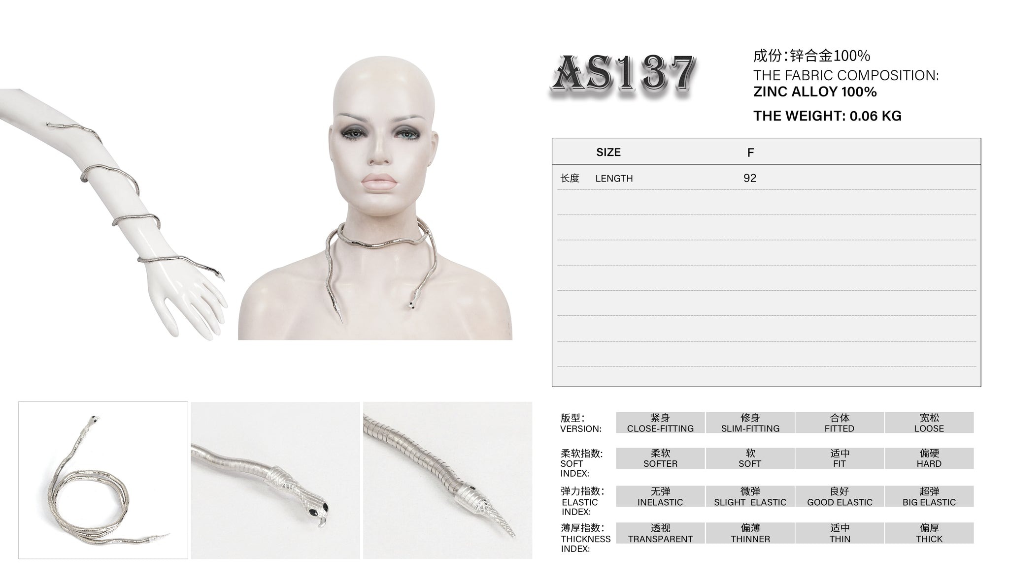 - 軽量の蛇のバングル兼ネックレス