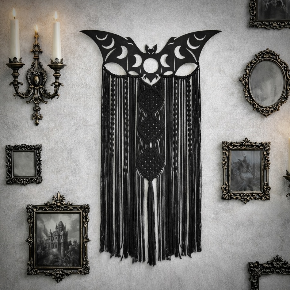 大きなコウモリと三日月を象ったゴシックなウォールハンギング