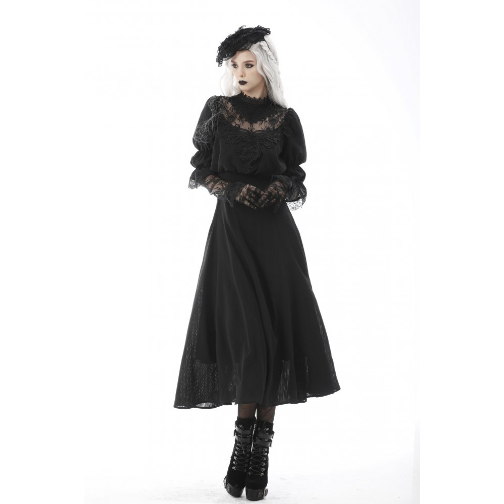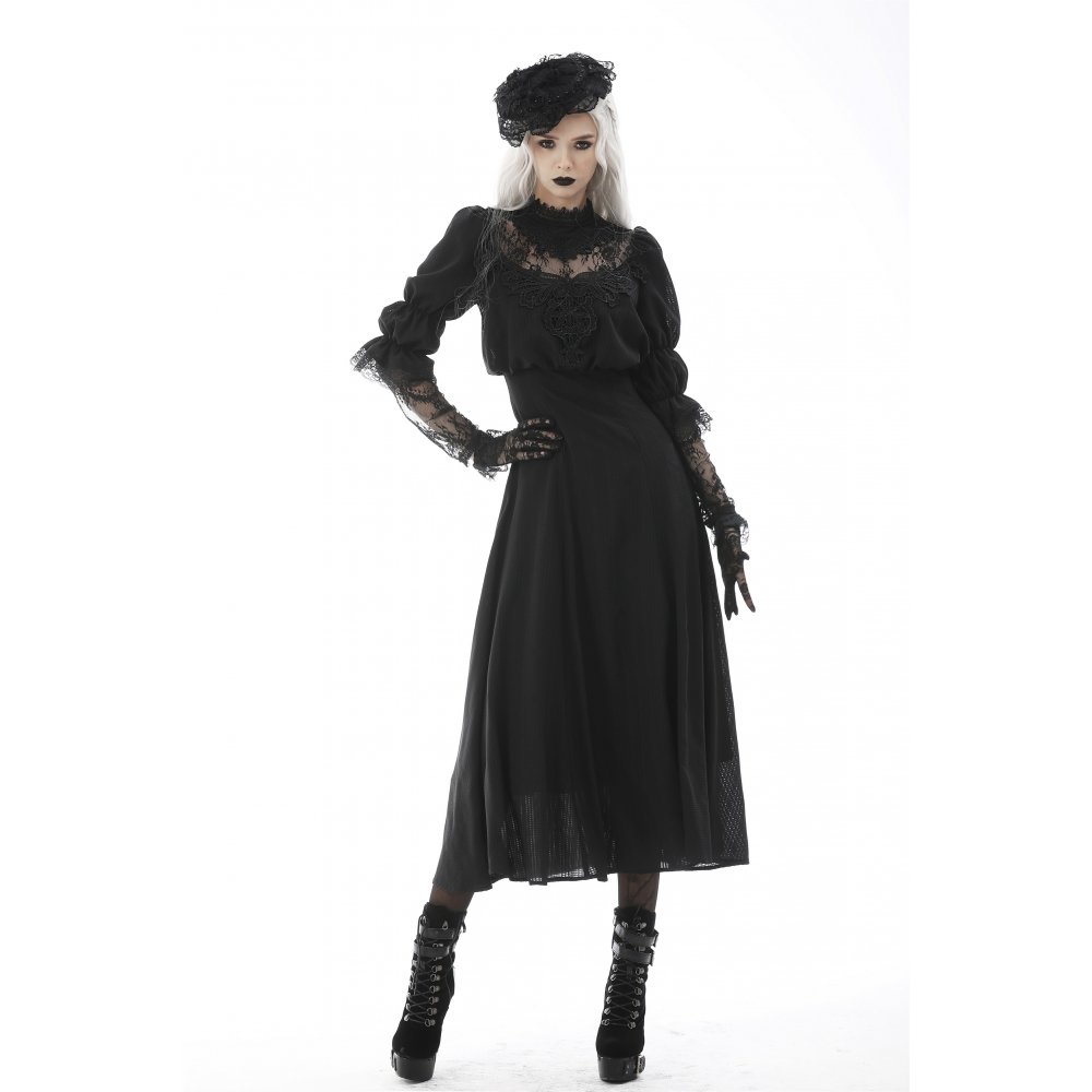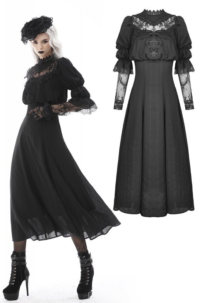 ゴシックなレースのマキシ丈ワンピ