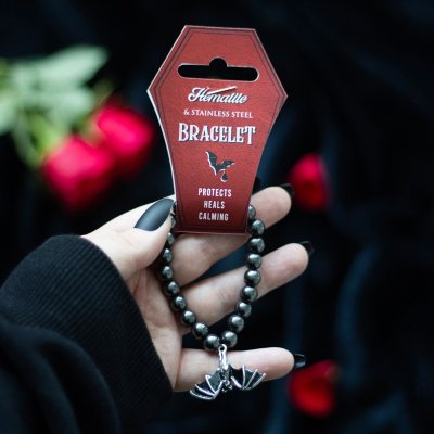 漆黒のビーズとプランシェットチャームが暗闇に潜むゴシックブレスレット
