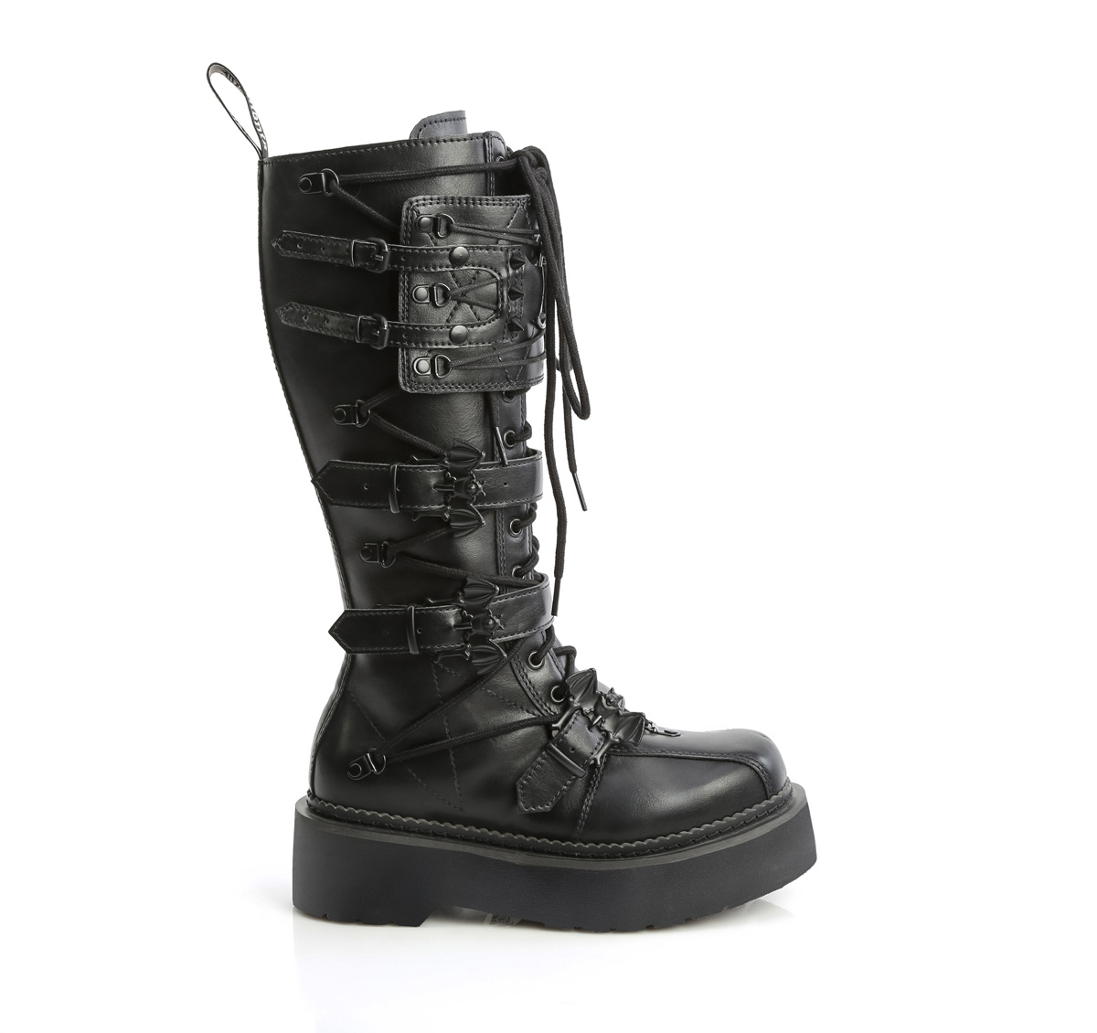 スカルОリングとコウモリバックルの厚底ブーツ
