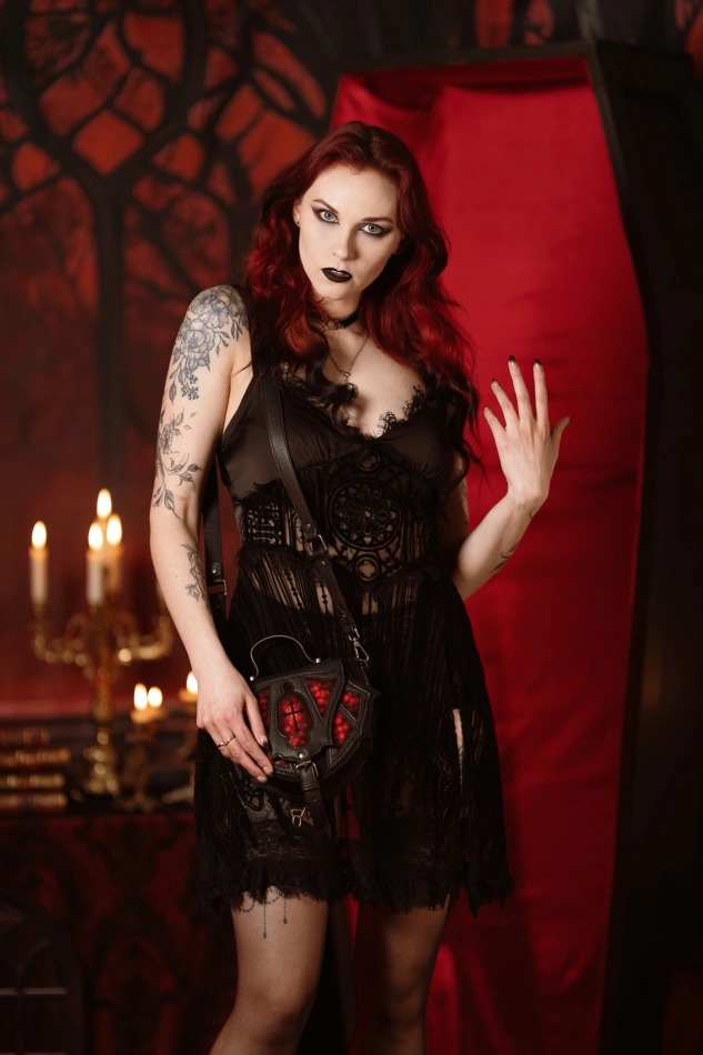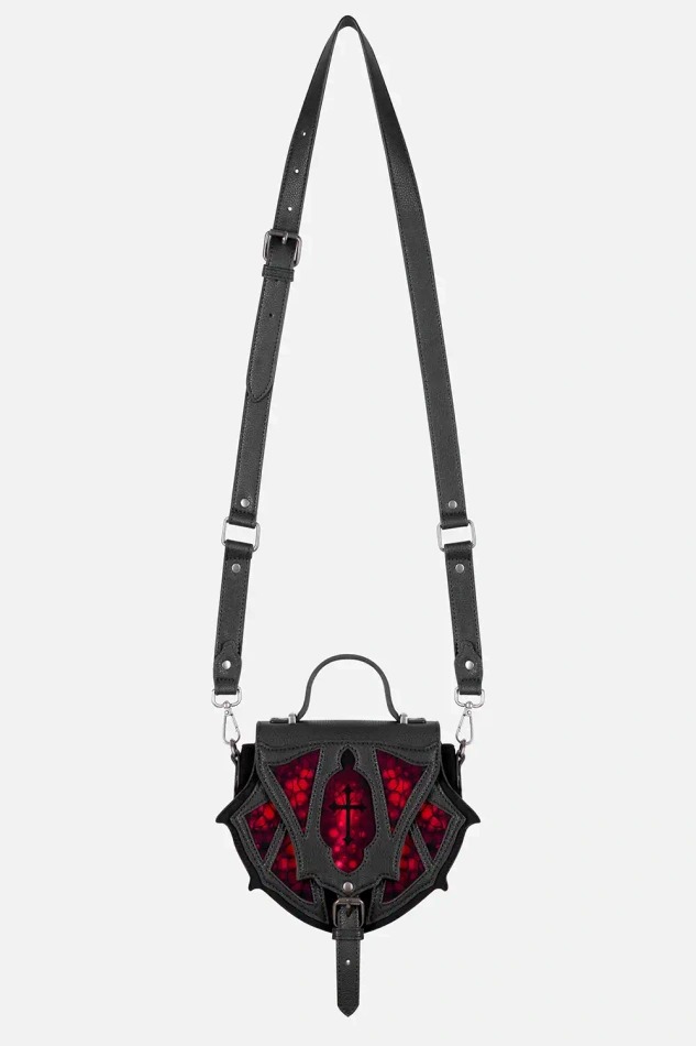ダークな大聖堂をモチーフにしたステンドグラスデザインのゴシックショルダーバッグ