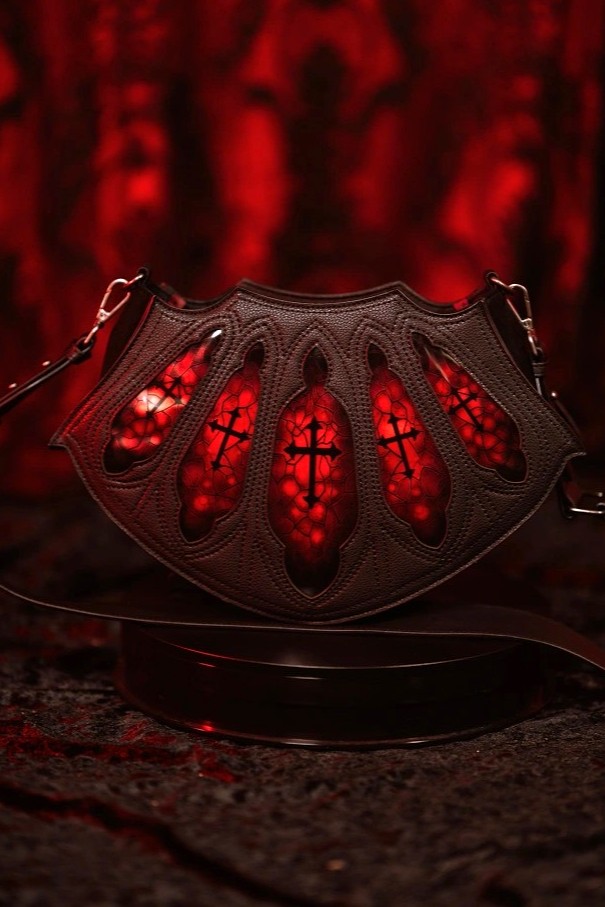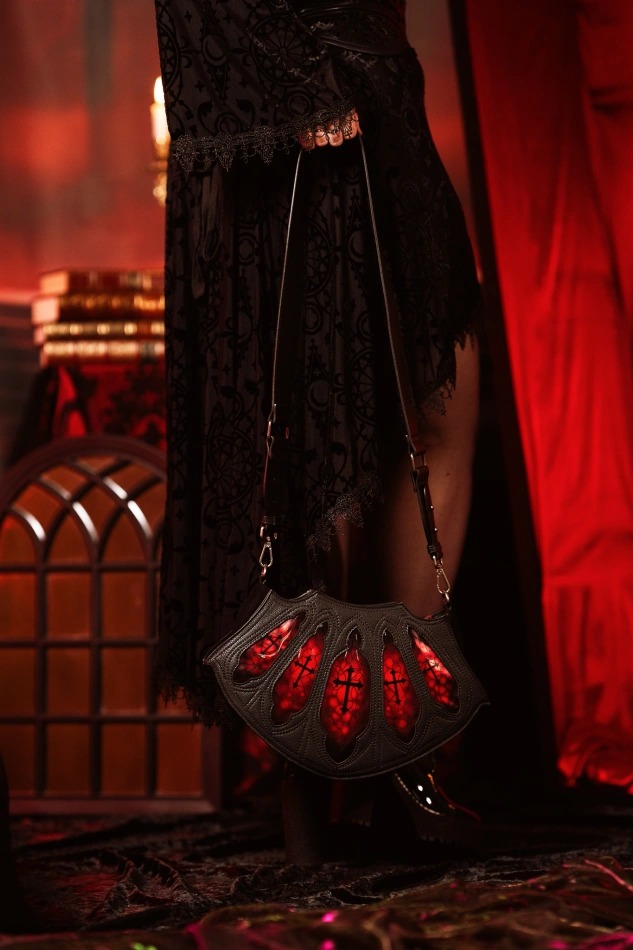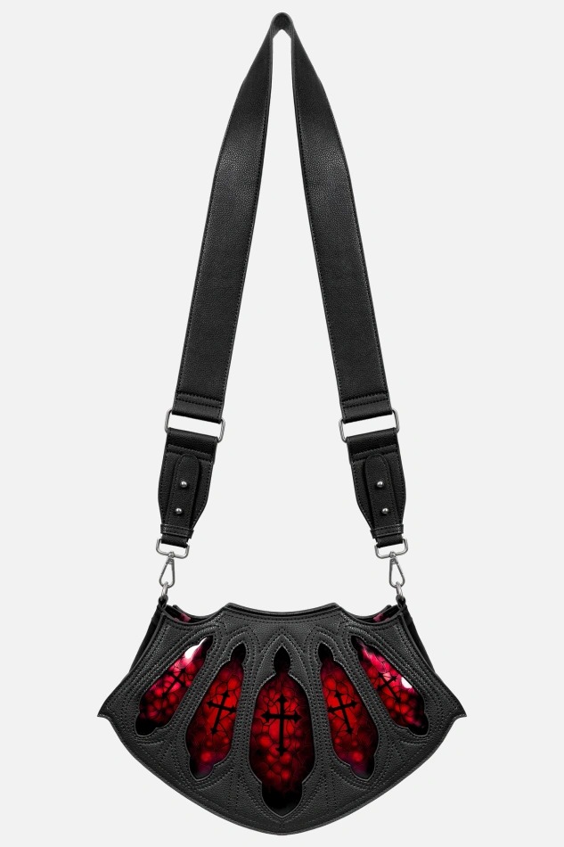 赤いステンドグラスが映える大聖堂モチーフのゴシックショルダーバッグ