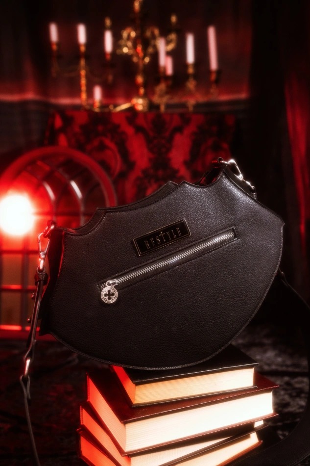 - 赤い裏地がダークでヴァンパイアな雰囲気を演出