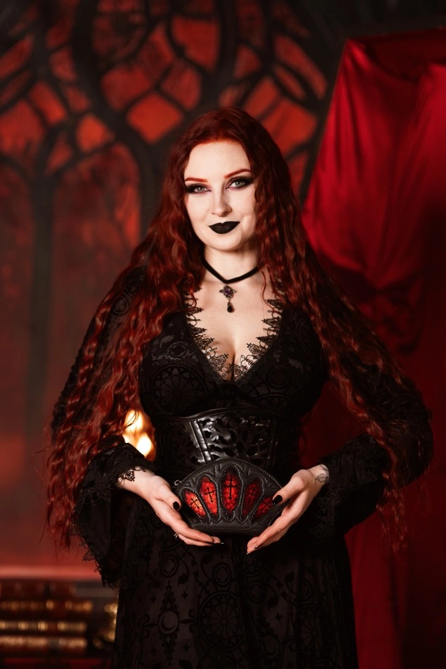 - 深みのある赤い内装がダークでヴァンパイアな雰囲気を演出
